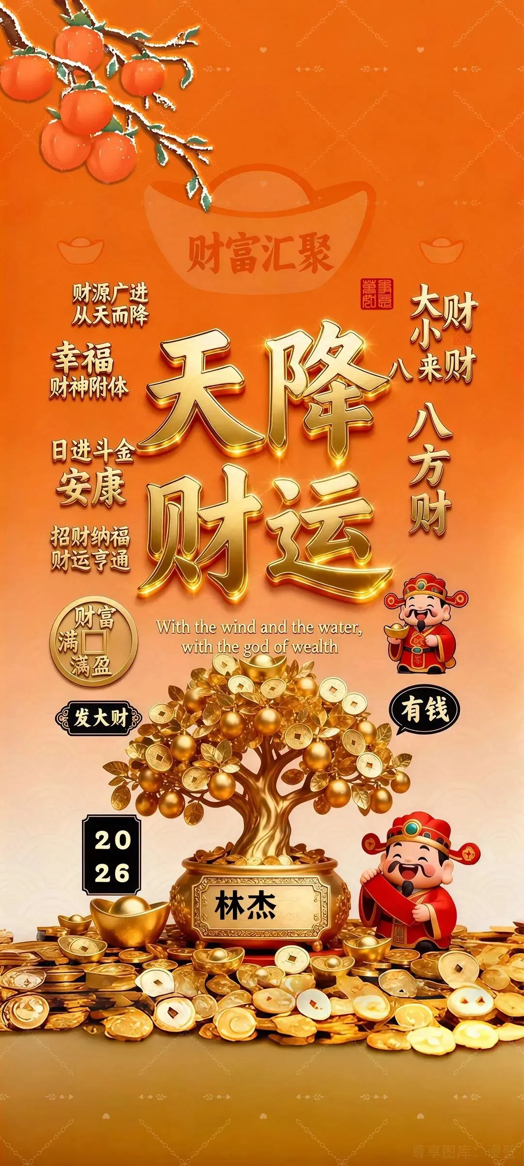 >新年手机壁纸,2026财源广进上传姓字定制暴富壁纸