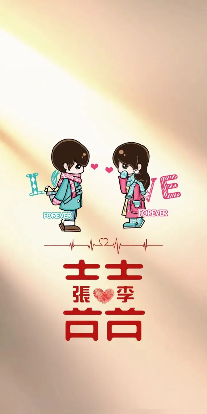 [囍]字情侣锁屏壁纸 | 姓氏手机壁纸