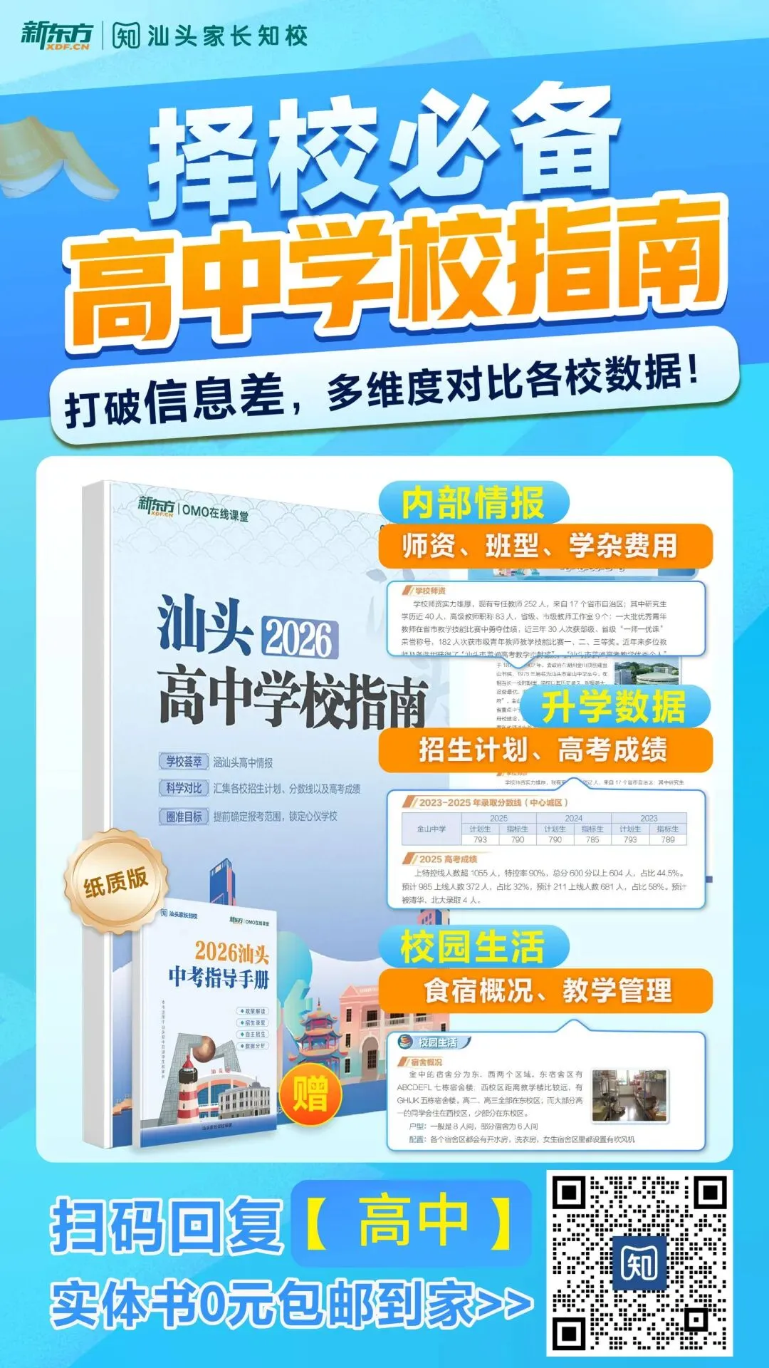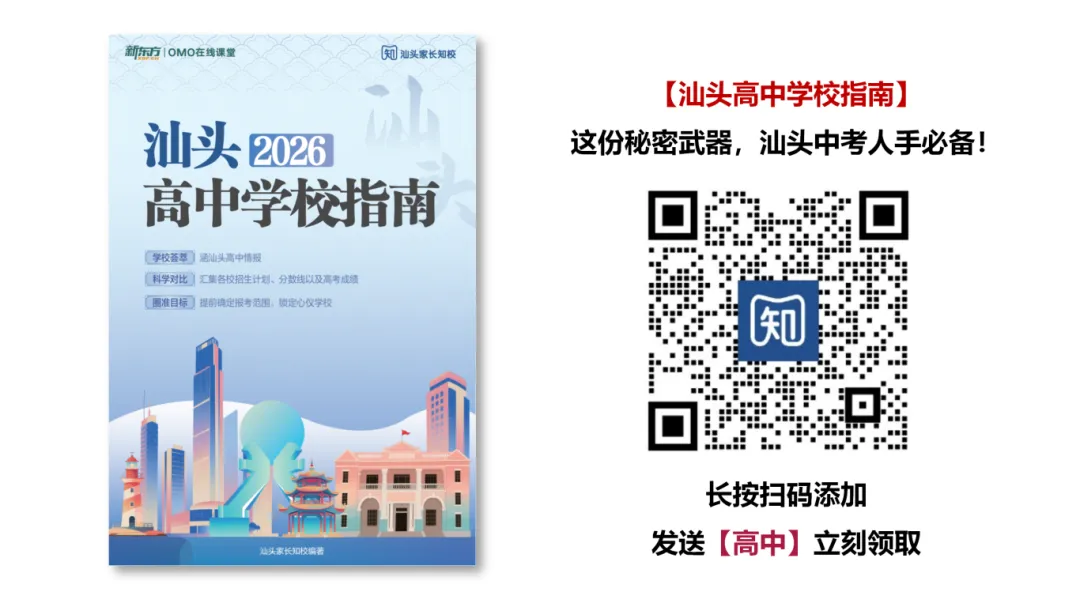 学校太多?不知道怎么找资讯?不用担心!老师已经通通已为你整理好啦,【汕头高中学校指南】一本整合以上所有数据,汕头中考家庭人手必备一本。