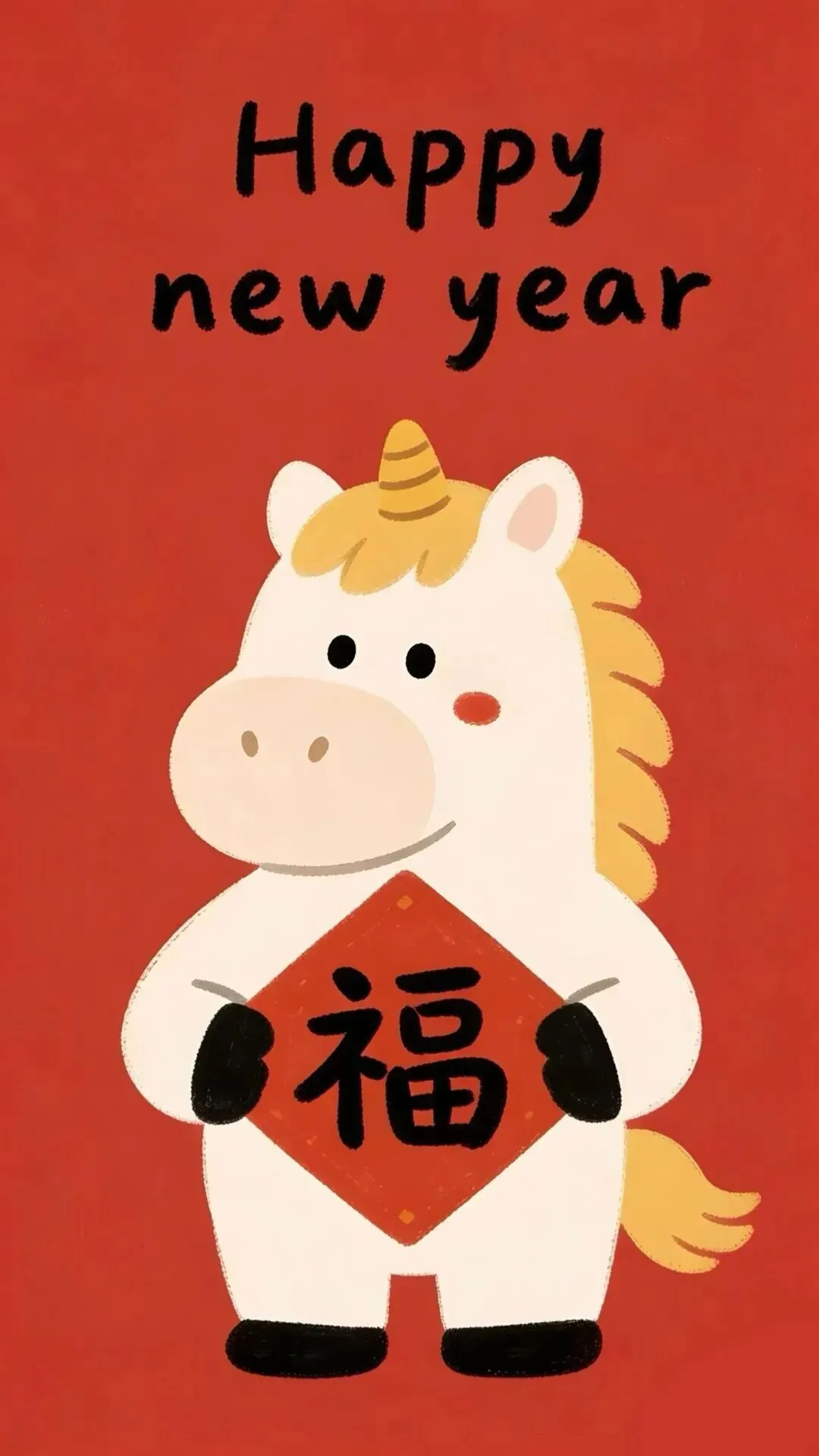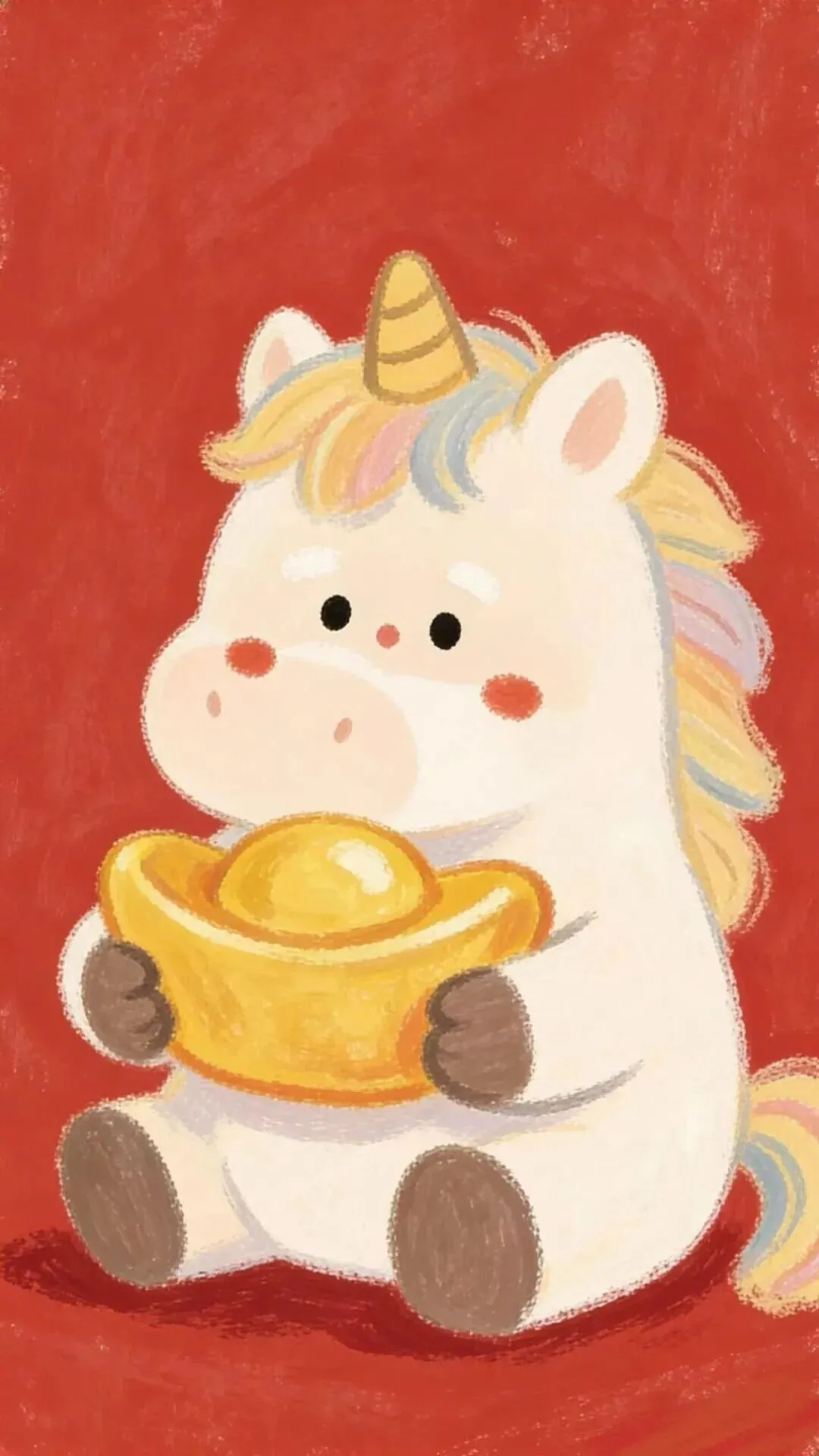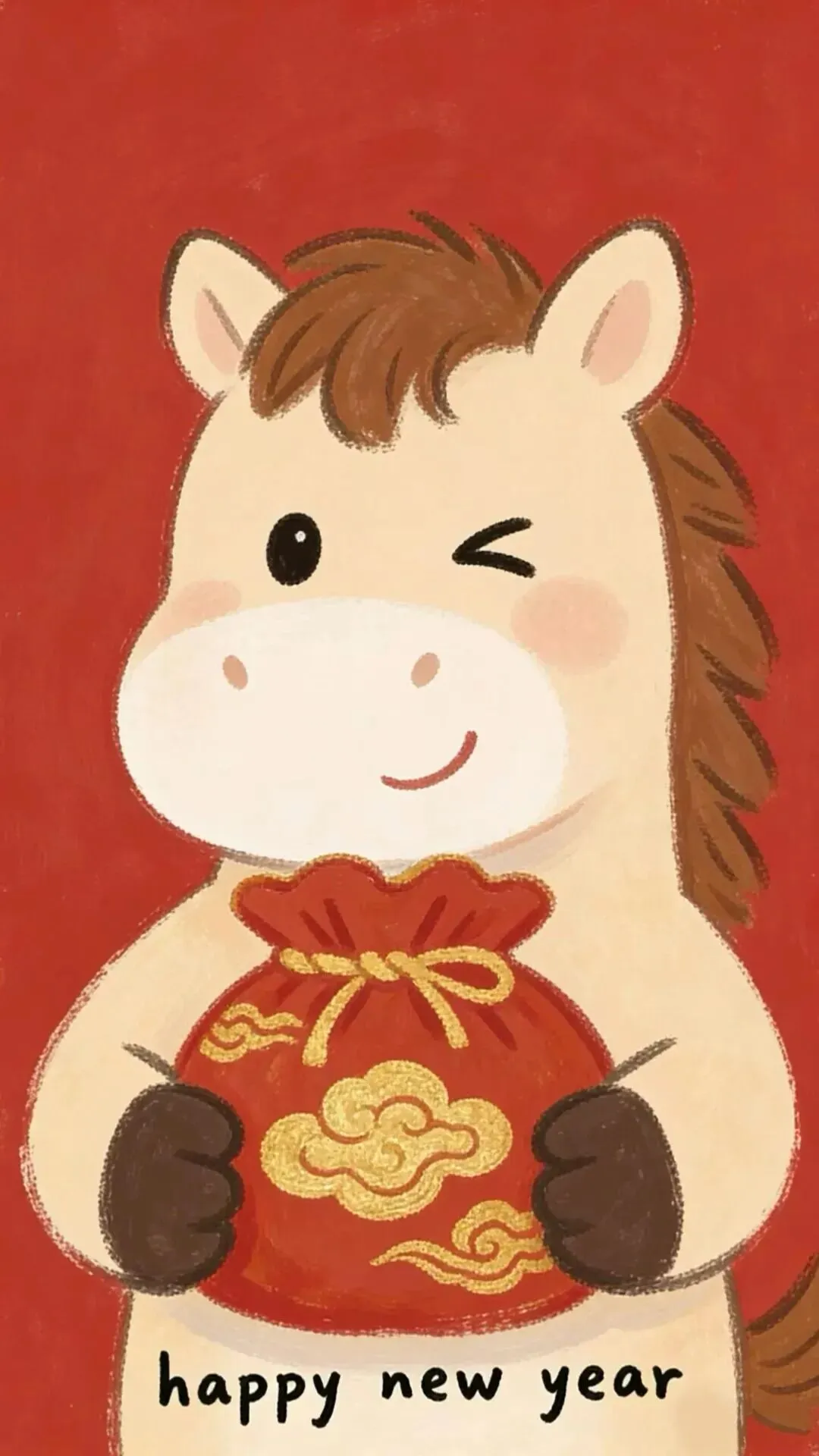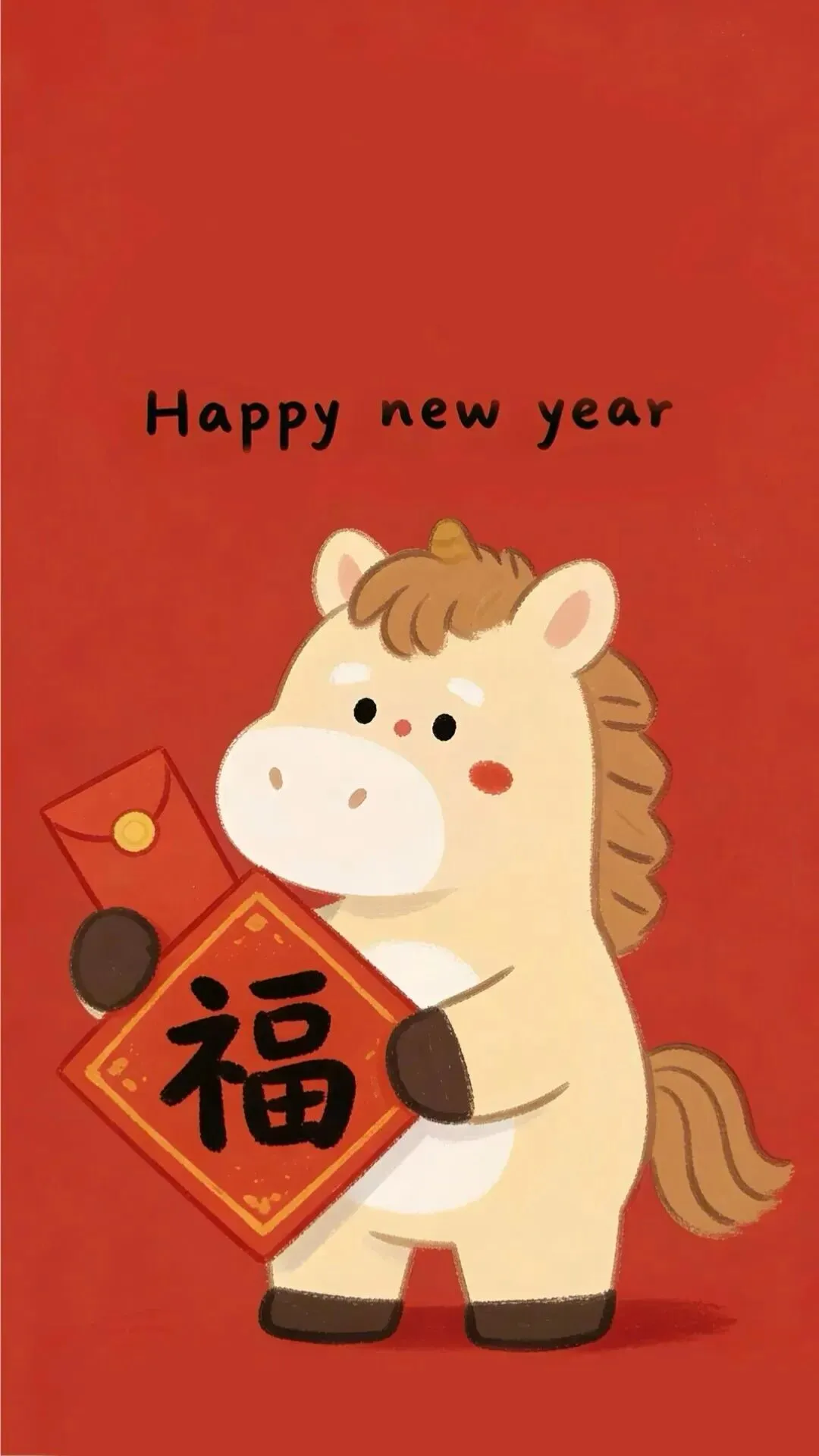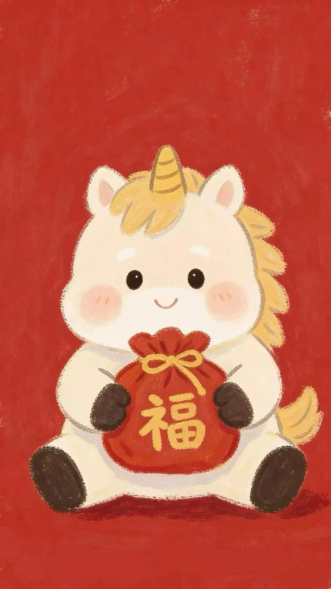 壁纸|马年红色系卡通手机壁纸