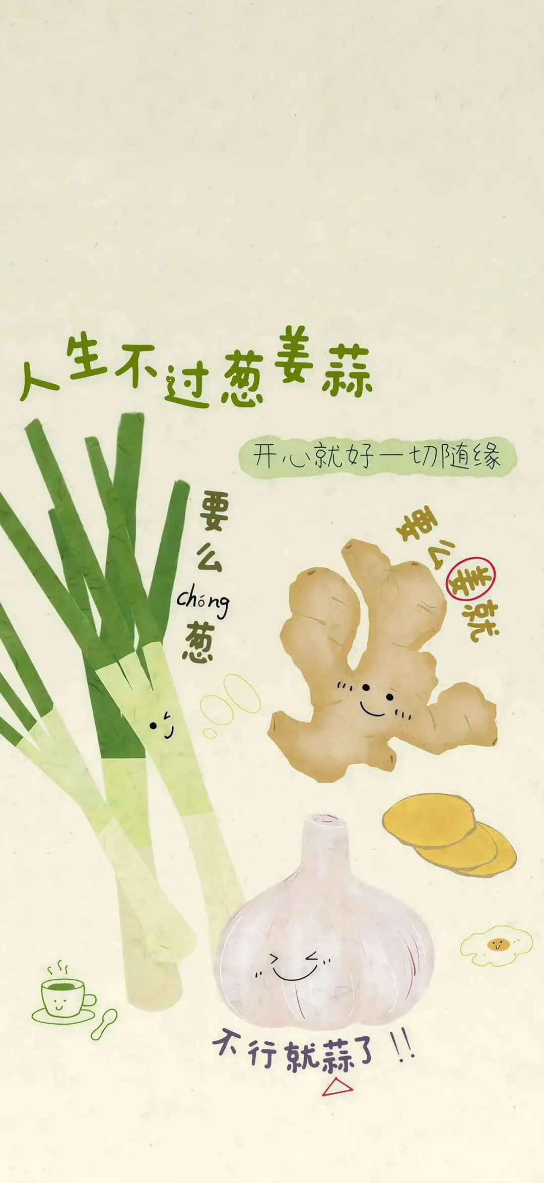 #葱姜蒜壁纸#治愈系壁纸#生活哲学#开心就好#谐音梗#手机壁纸