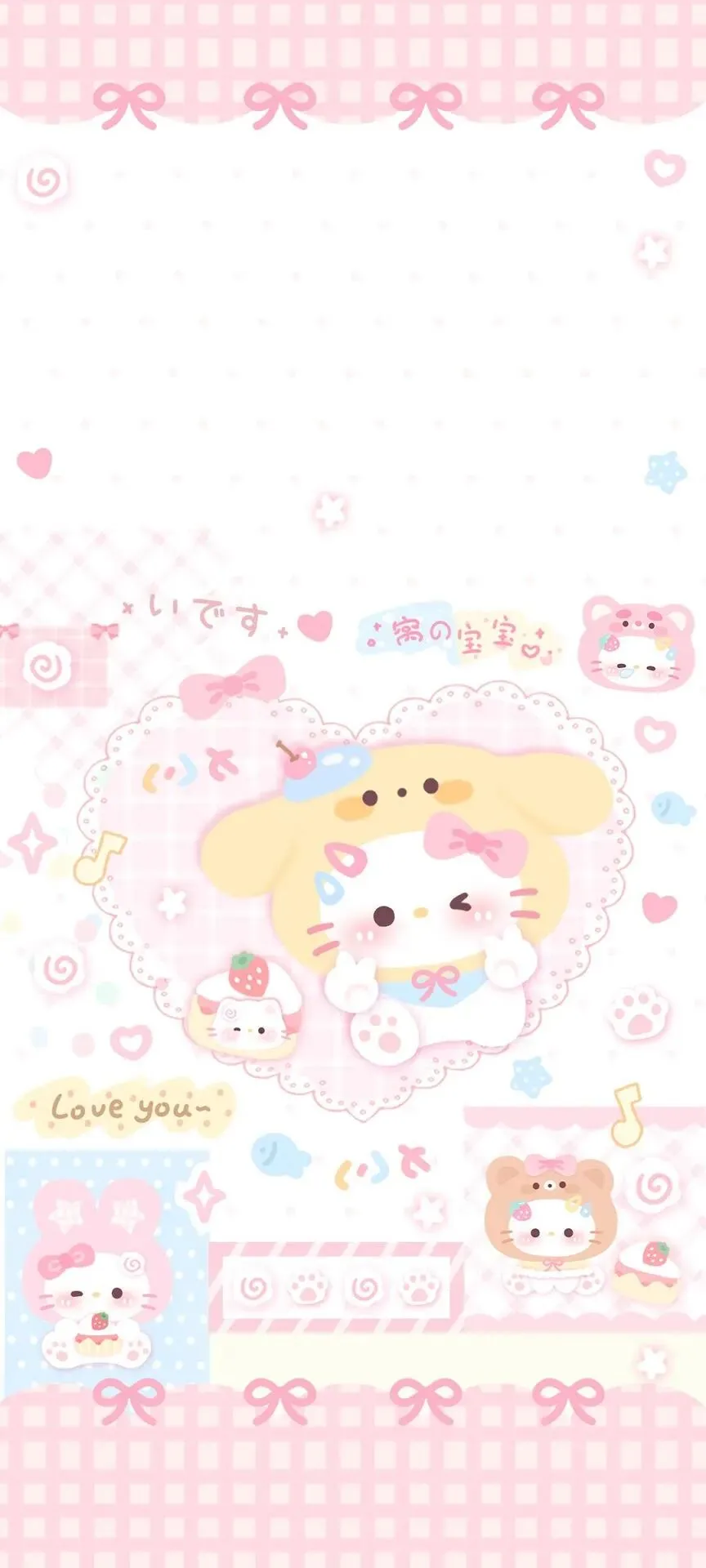 小清新背景kitty手机壁纸套图!锁屏主图
