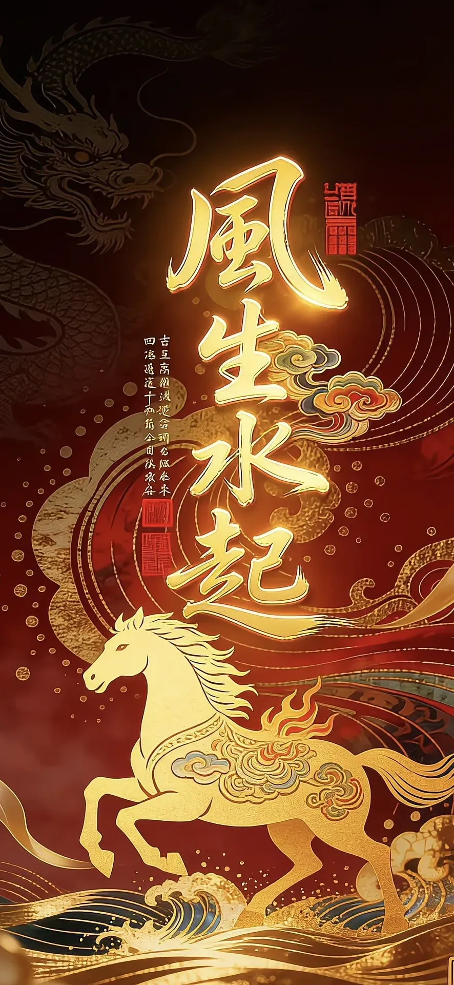 国风吉祥语手机壁纸!天官赐福!风生水起!