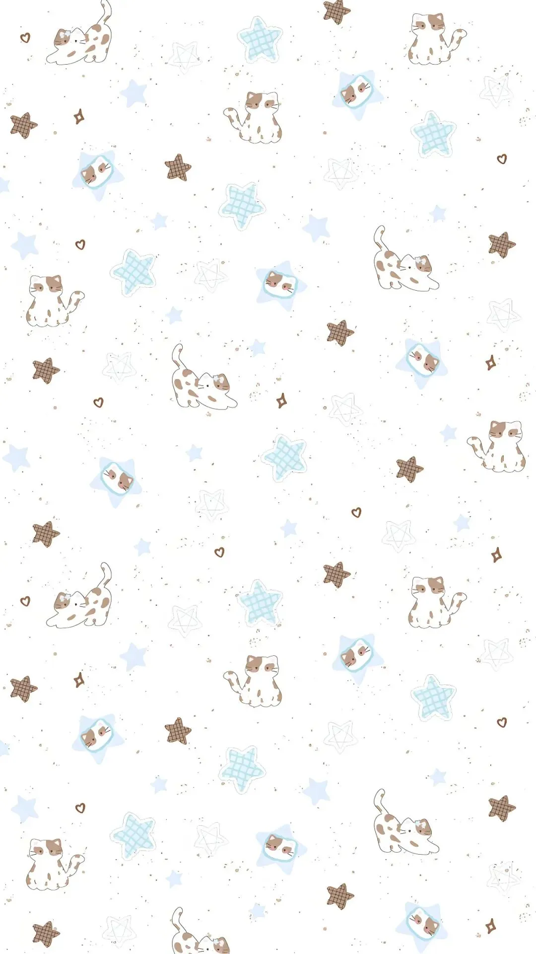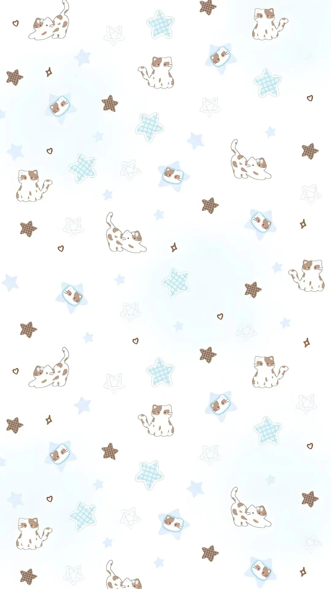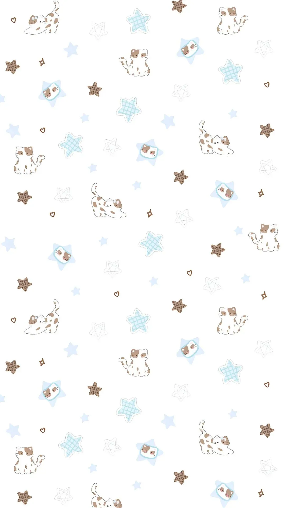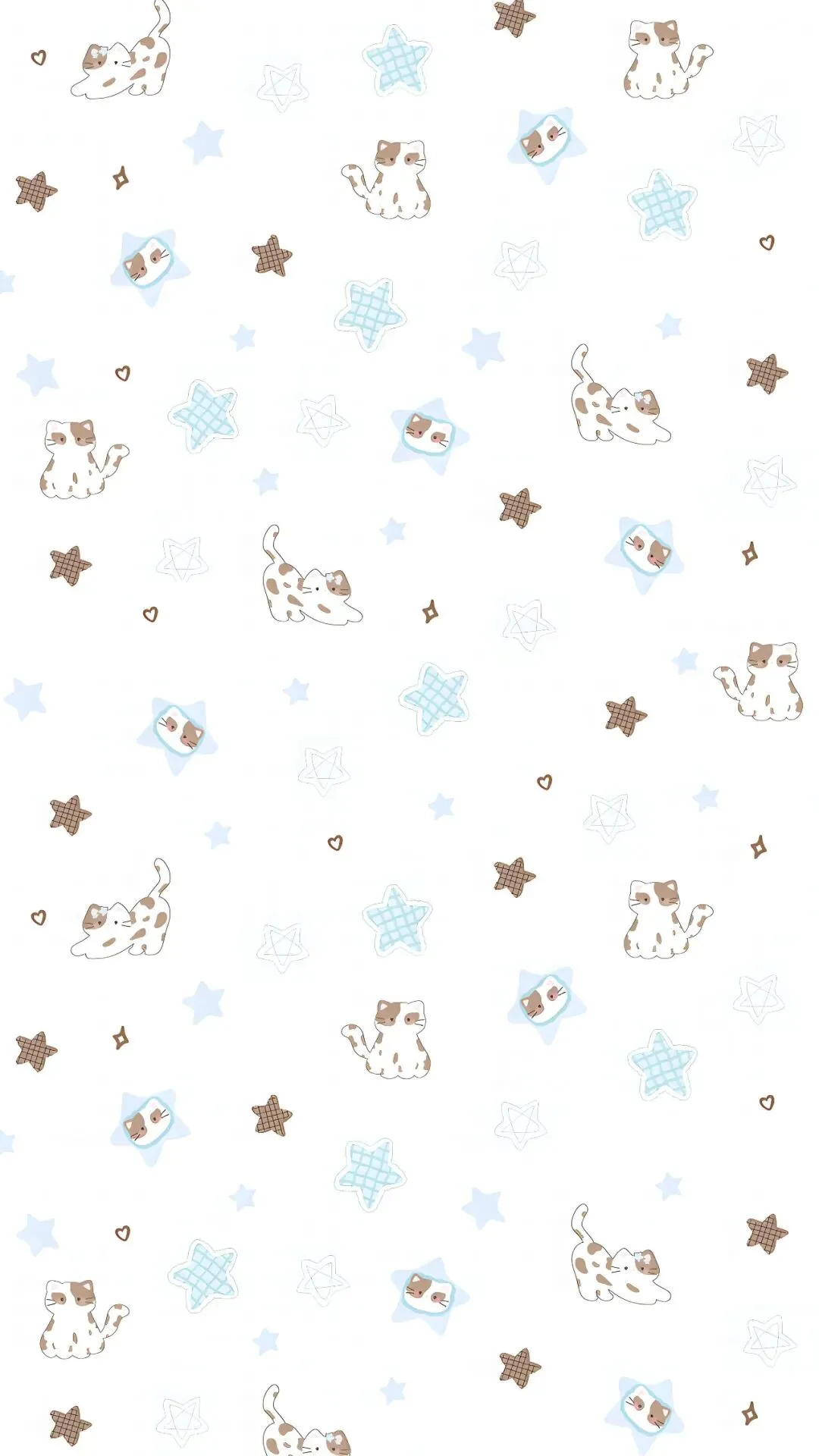 白色背景搭配清新蓝棕色调,软萌小猫或趴或躺,Kitty笑脸超治愈,加上星星爱心点缀,瞬间拯救无聊屏幕!
