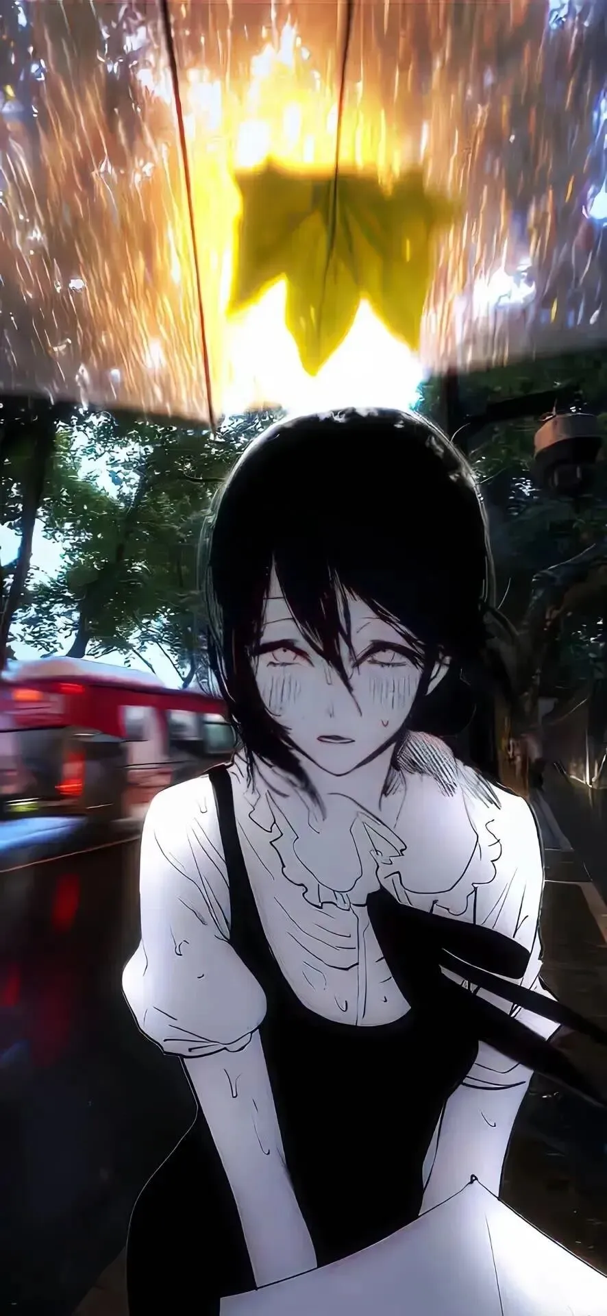 - 黑发少女壁纸:冷调的黑白搭配雨夜场景,少女的泪眼与雨景相映,氛围感拉满,尽显都市的孤独与温柔;