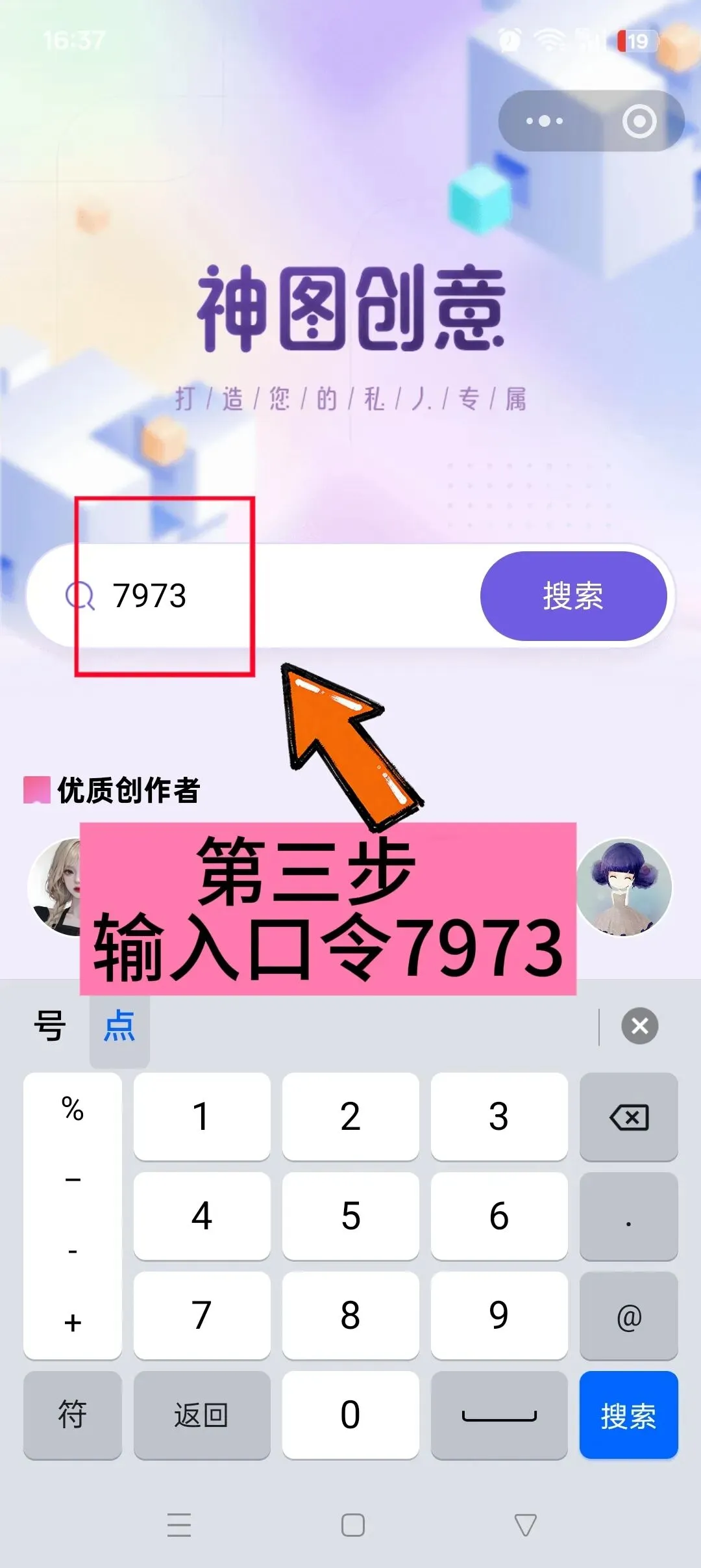首先打开微信搜一搜 搜索"神图创意”输入囗令(7973)即可领取