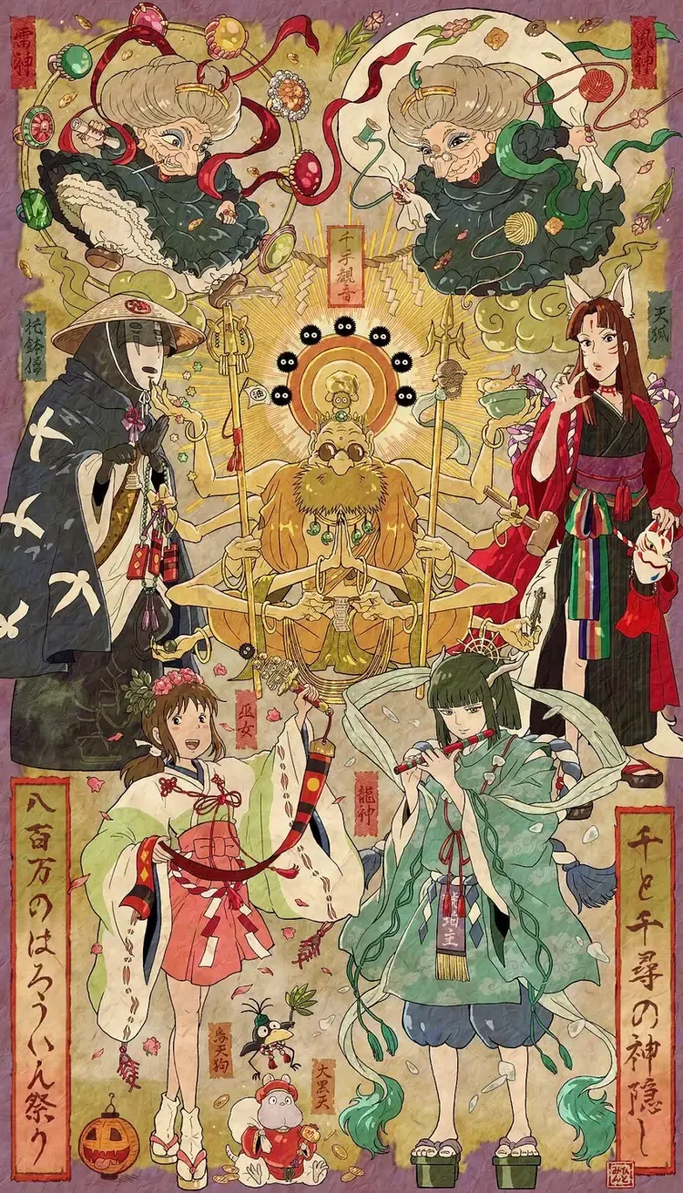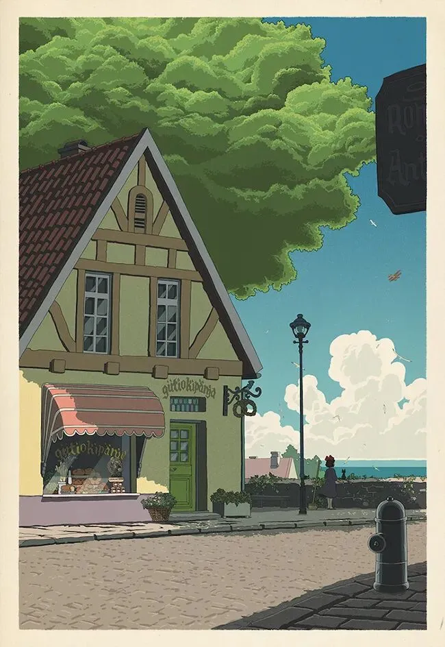 为吉卜力动画绘制的插画风纪念海报