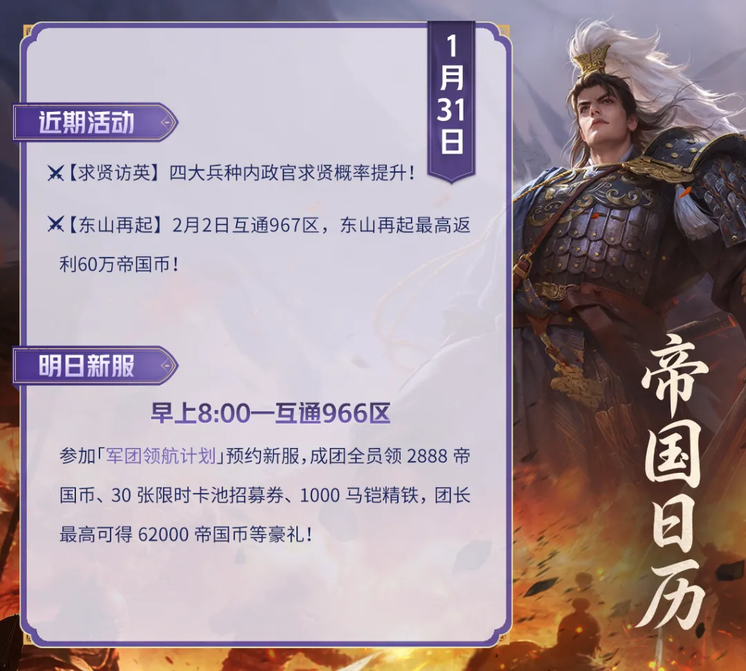 帝国币、传奇现世招募券等丰厚好礼!