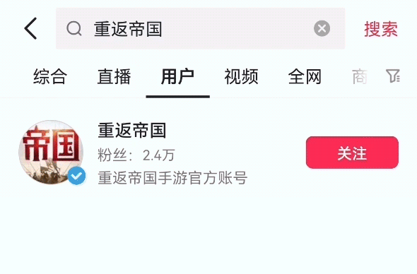 前往哔哩哔哩、抖音搜索“重返帝国"