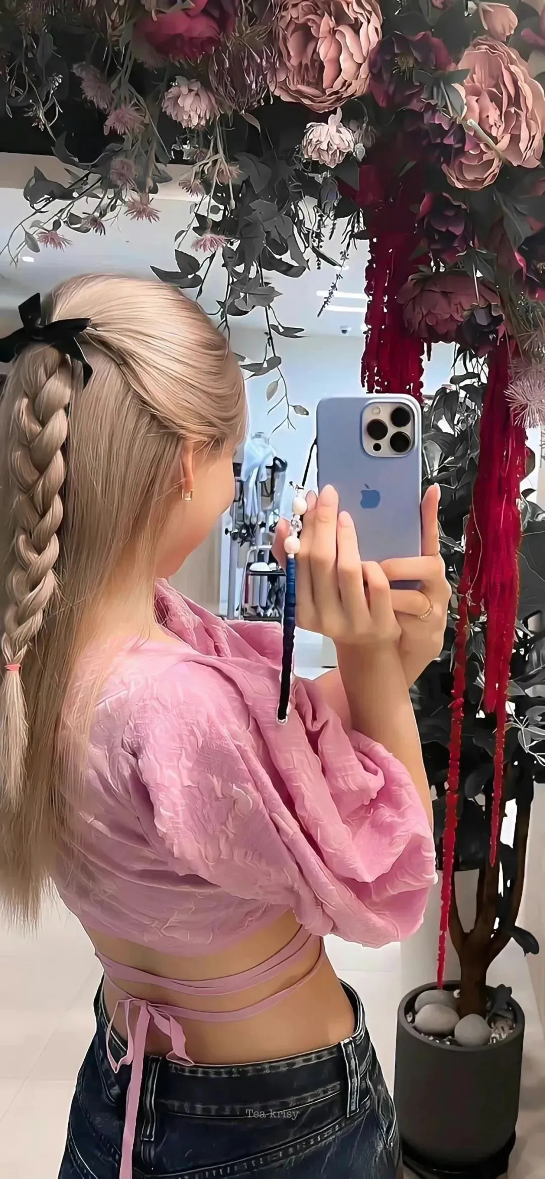 手机壁纸~海棠树下的少女