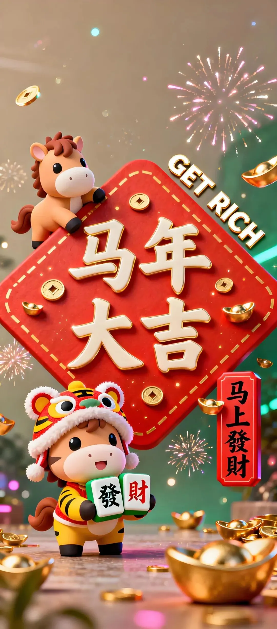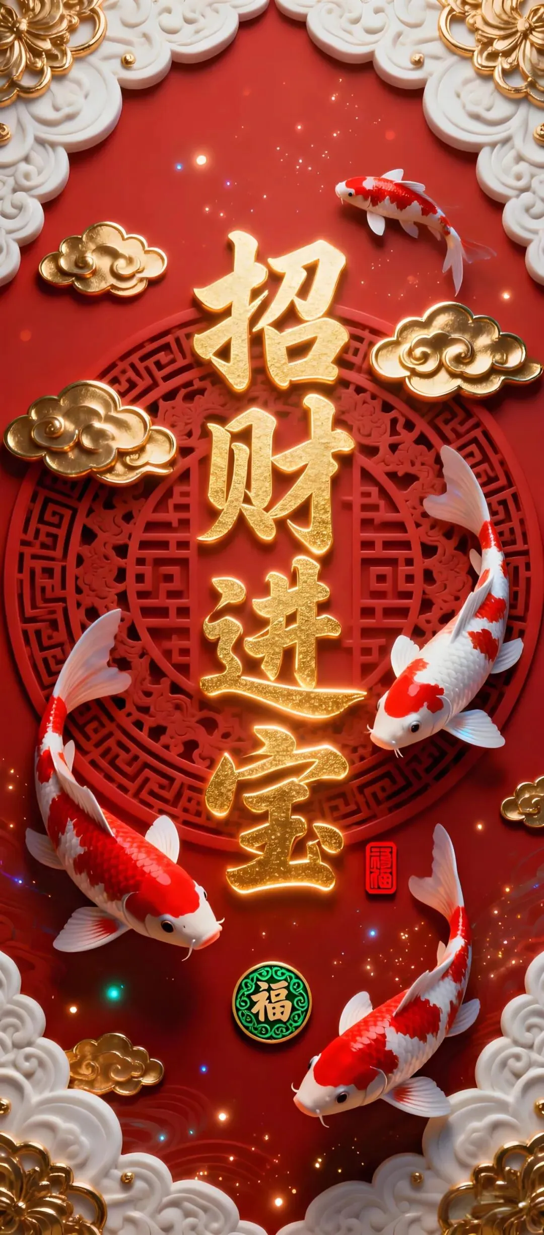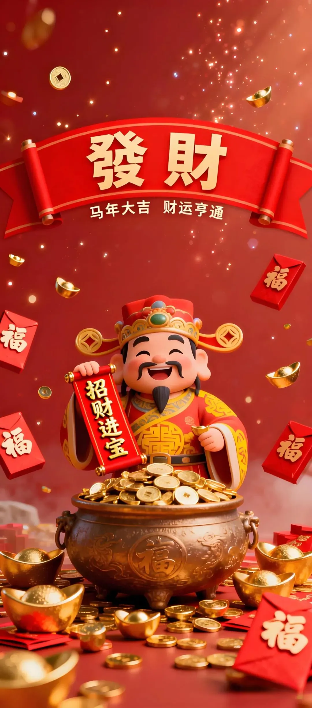 中式吉祥手机壁纸:荷花、小马、锦鲤、财神