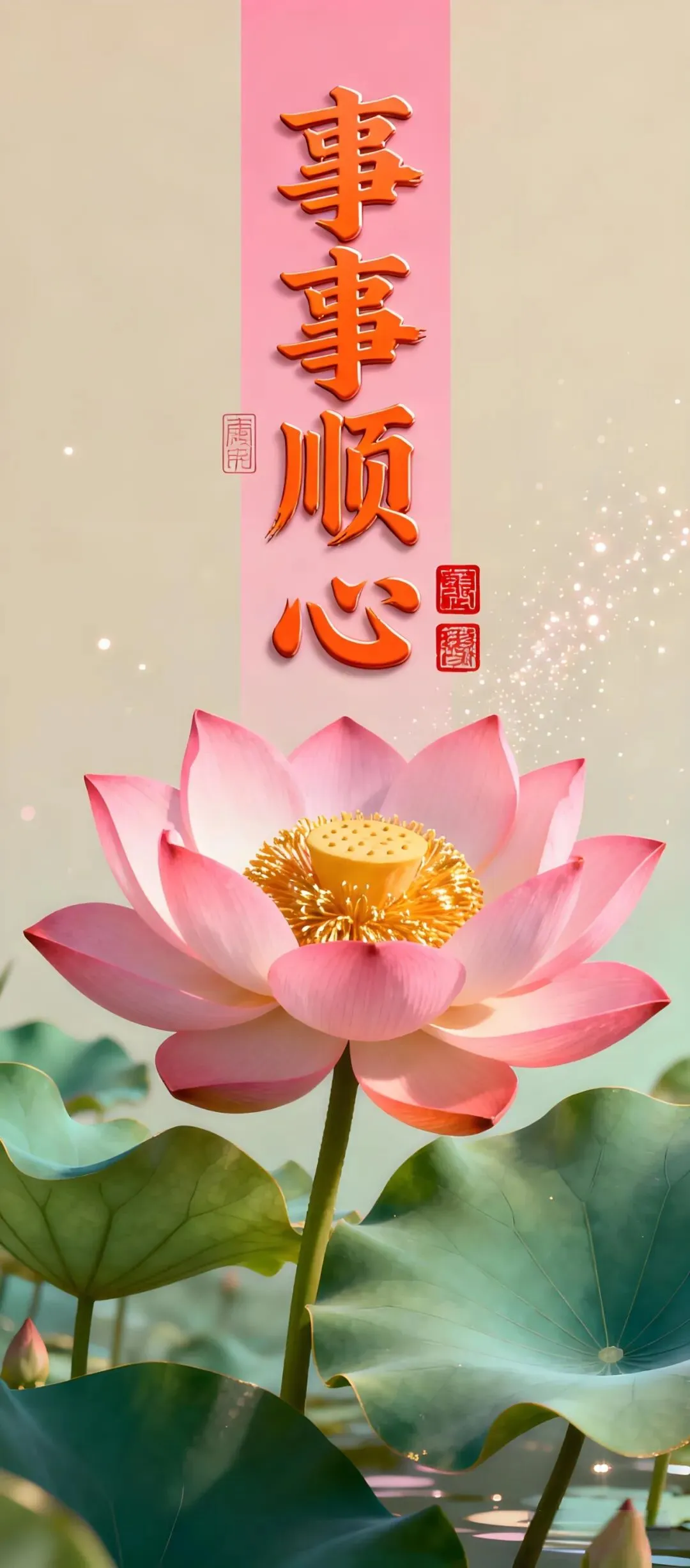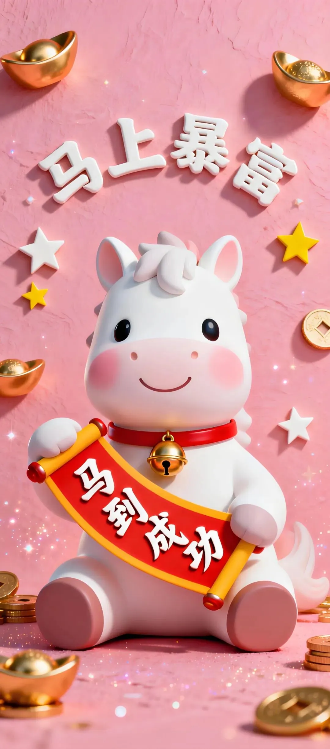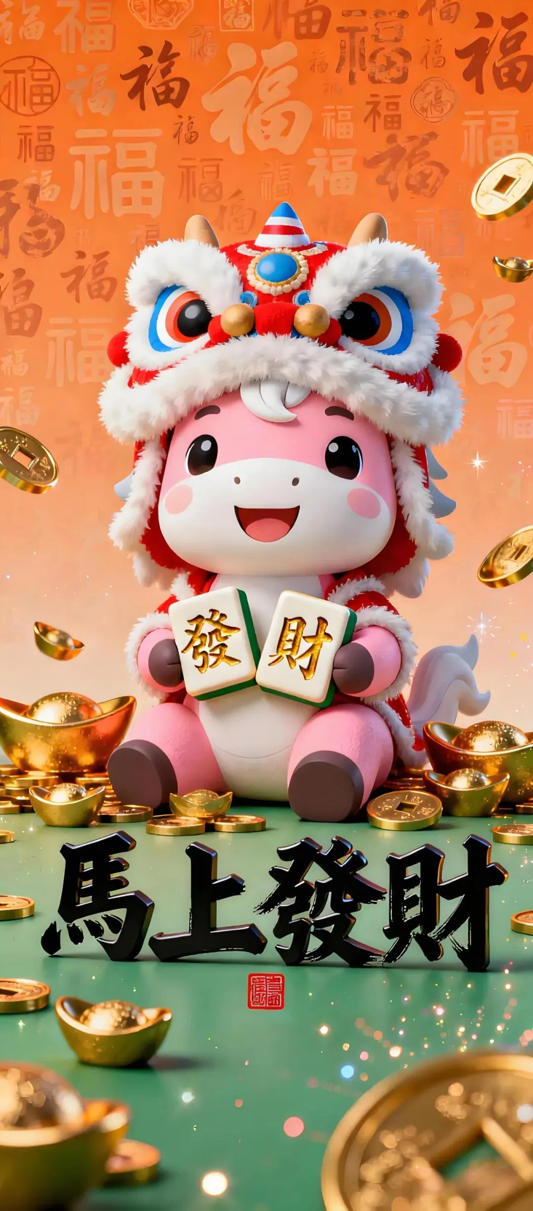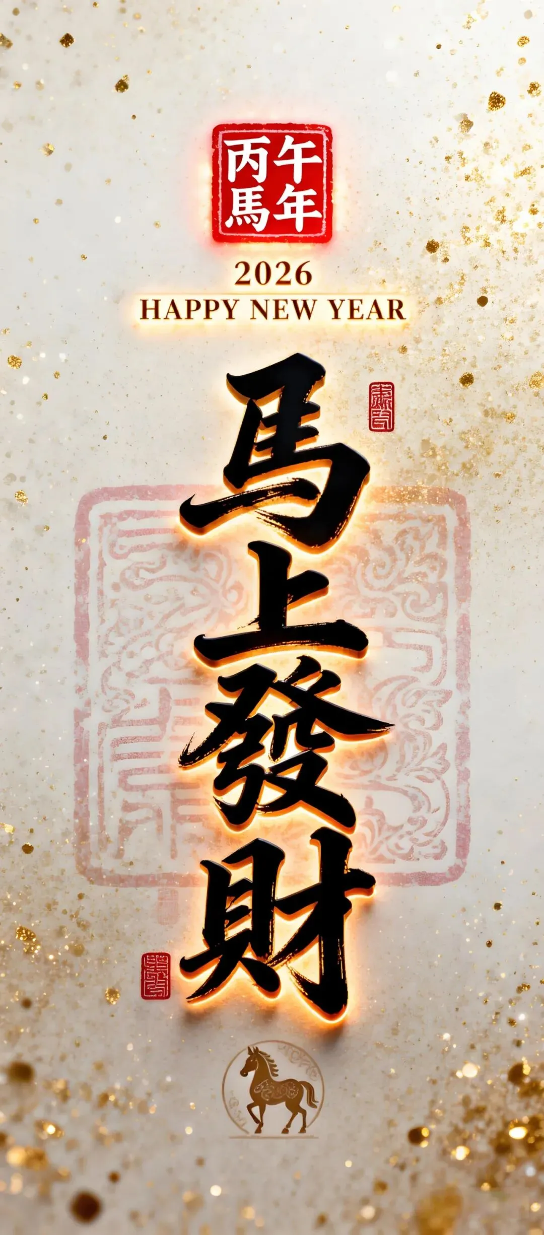 中式吉祥手机壁纸:荷花、小马、锦鲤、财神