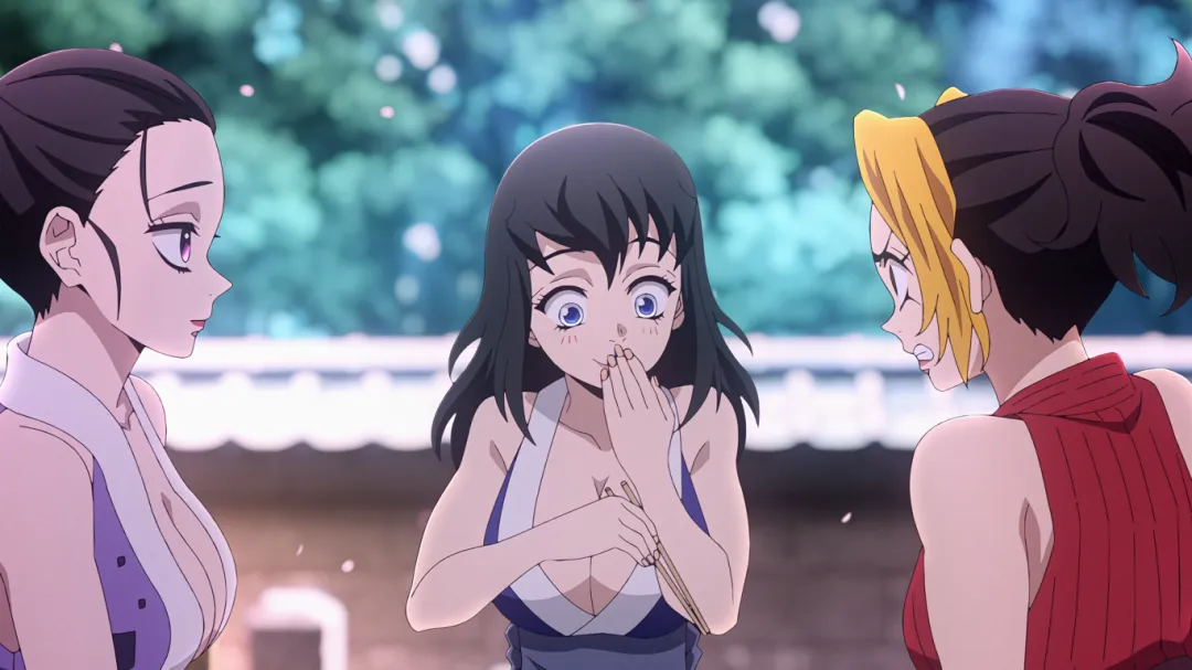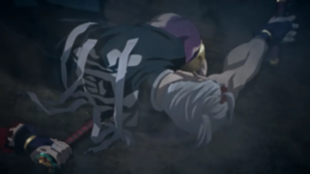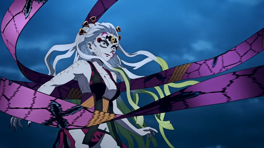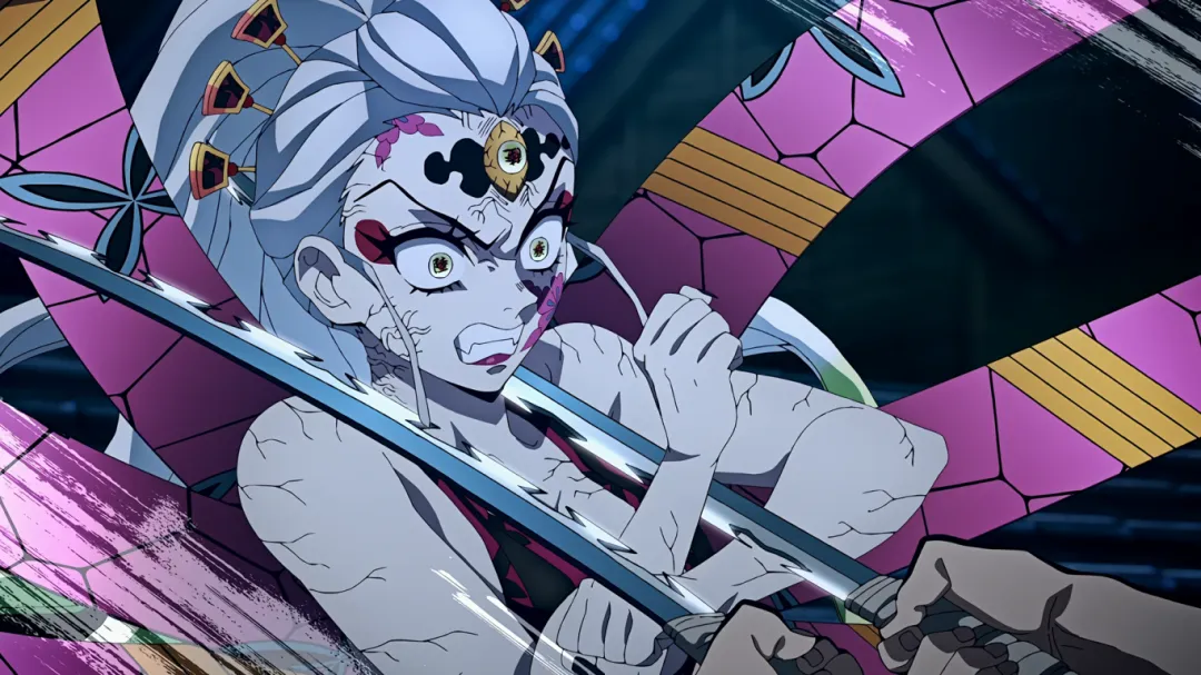 回归战斗场面,妓夫太郎使出血鬼术弹开了宇髄天元的攻击。因为被雏鹤苦无扎到才受了伤,报复心极强的他瞬闪就要杀掉雏鹤。
