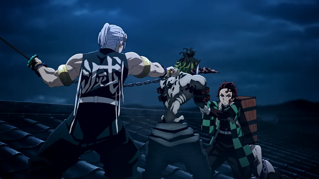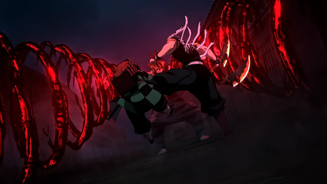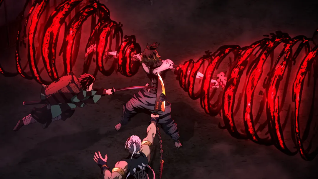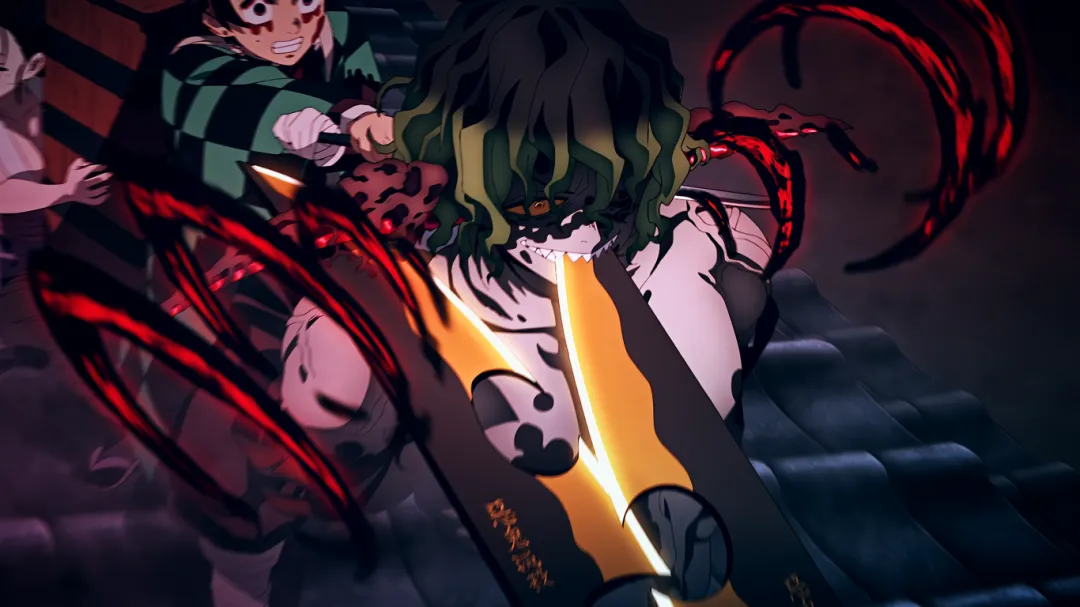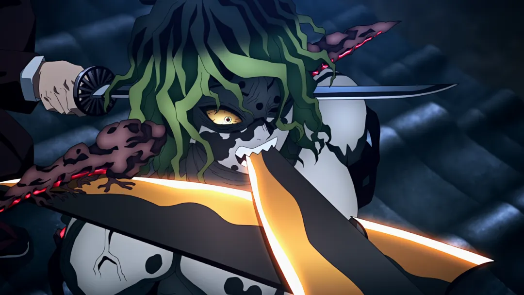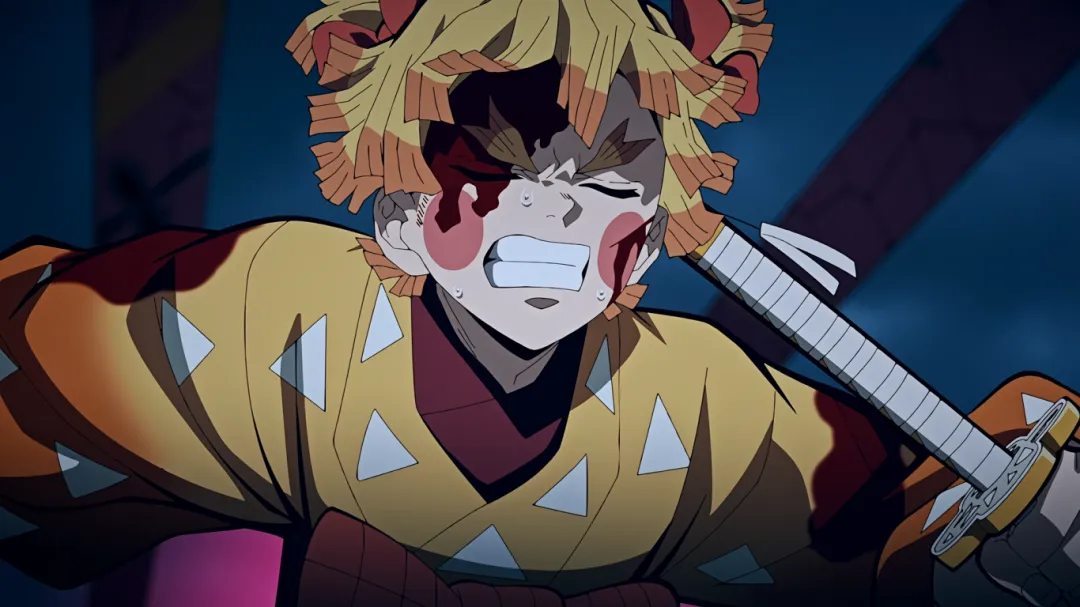 但不成想下一秒,画风突变。妓夫太郎瞬闪镰刀插入了伊之助的心脏;音柱宇髄天元被砍断手倒地不起;善逸为了救炭治郎被房屋瓦砾砸到;炭治郎也身负重伤。