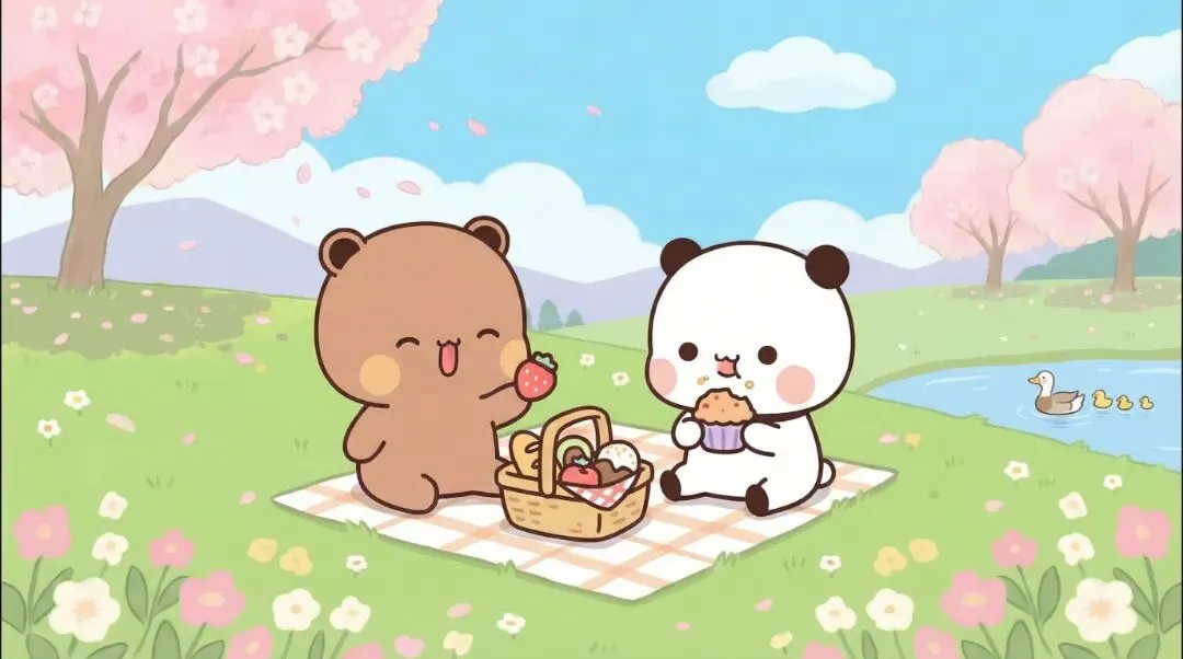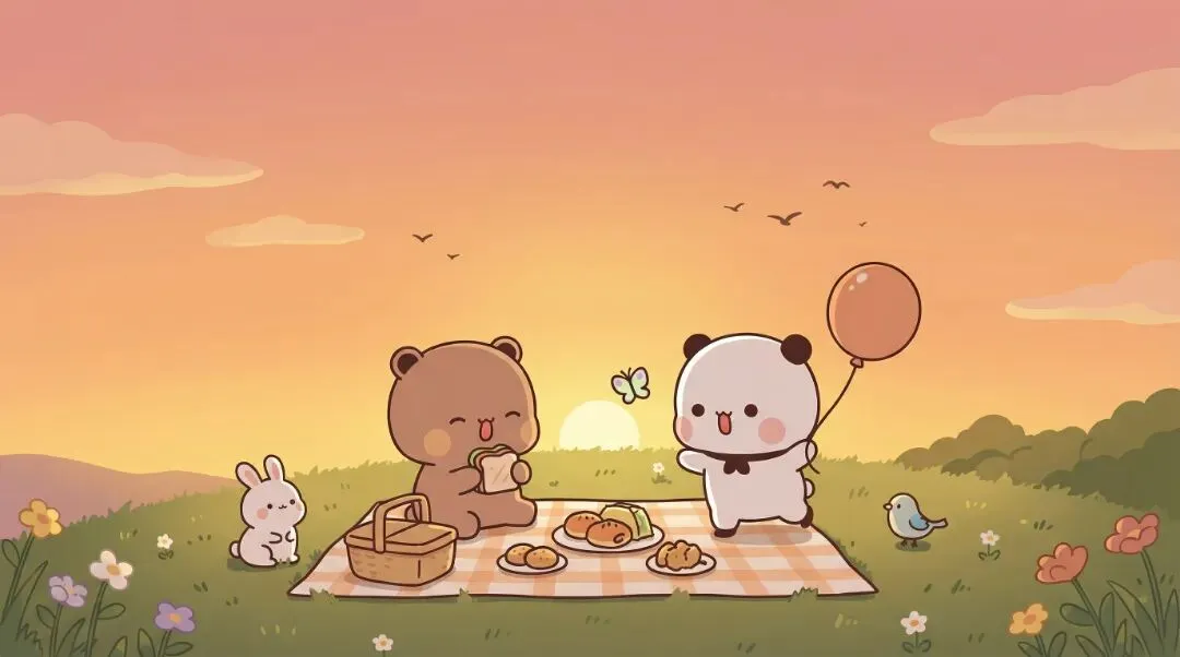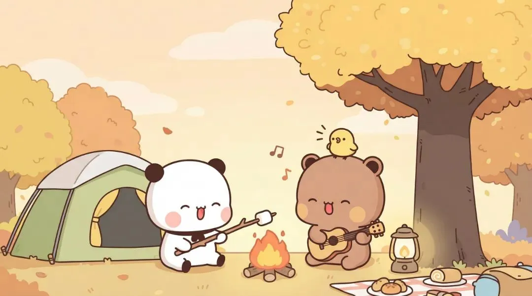 窗外月光正好,照住两只熊猫相拥嘅影子。生活就系咁,唔需要轰轰烈烈,只需要有个人陪你疯陪你傻,把"一日三餐"过成"一年四季",把"你哋"变成"我哋"。