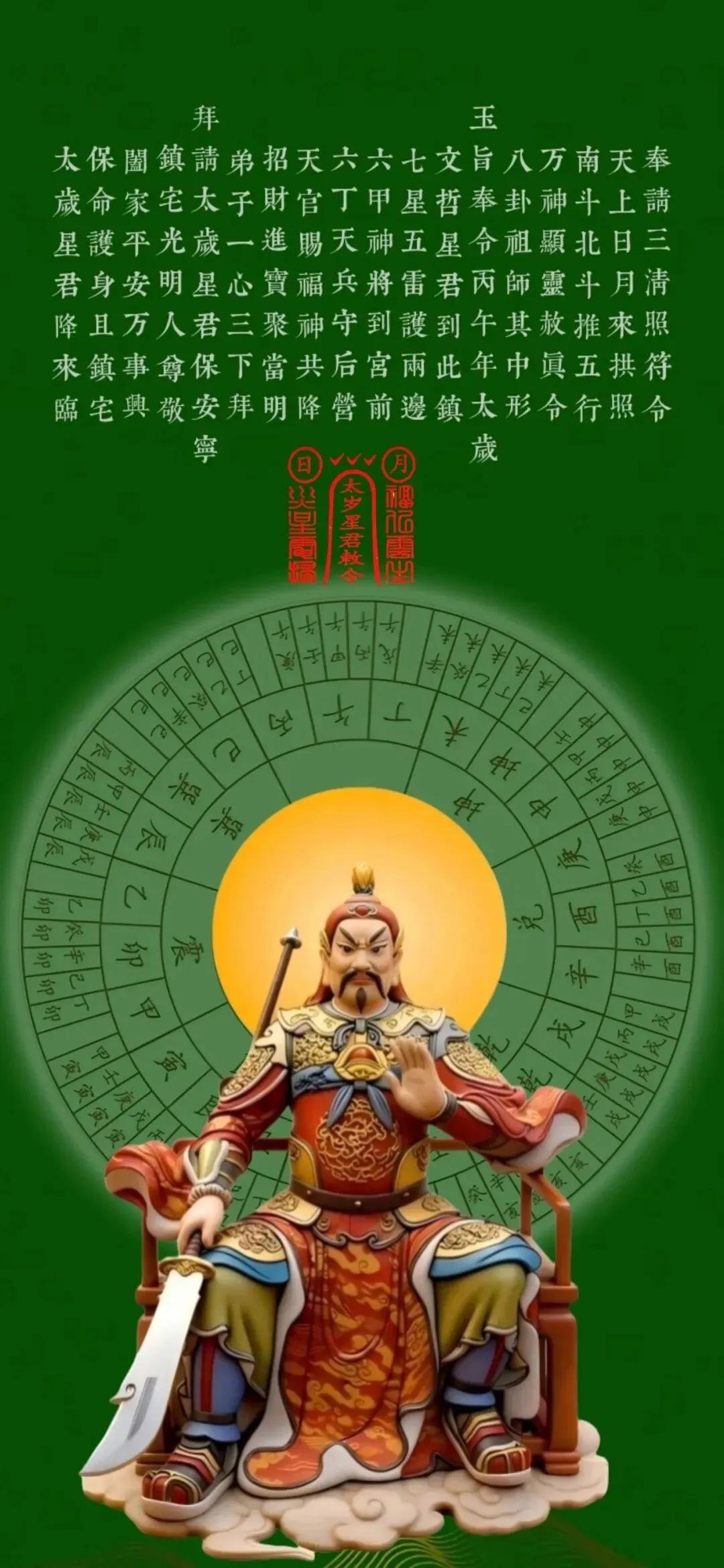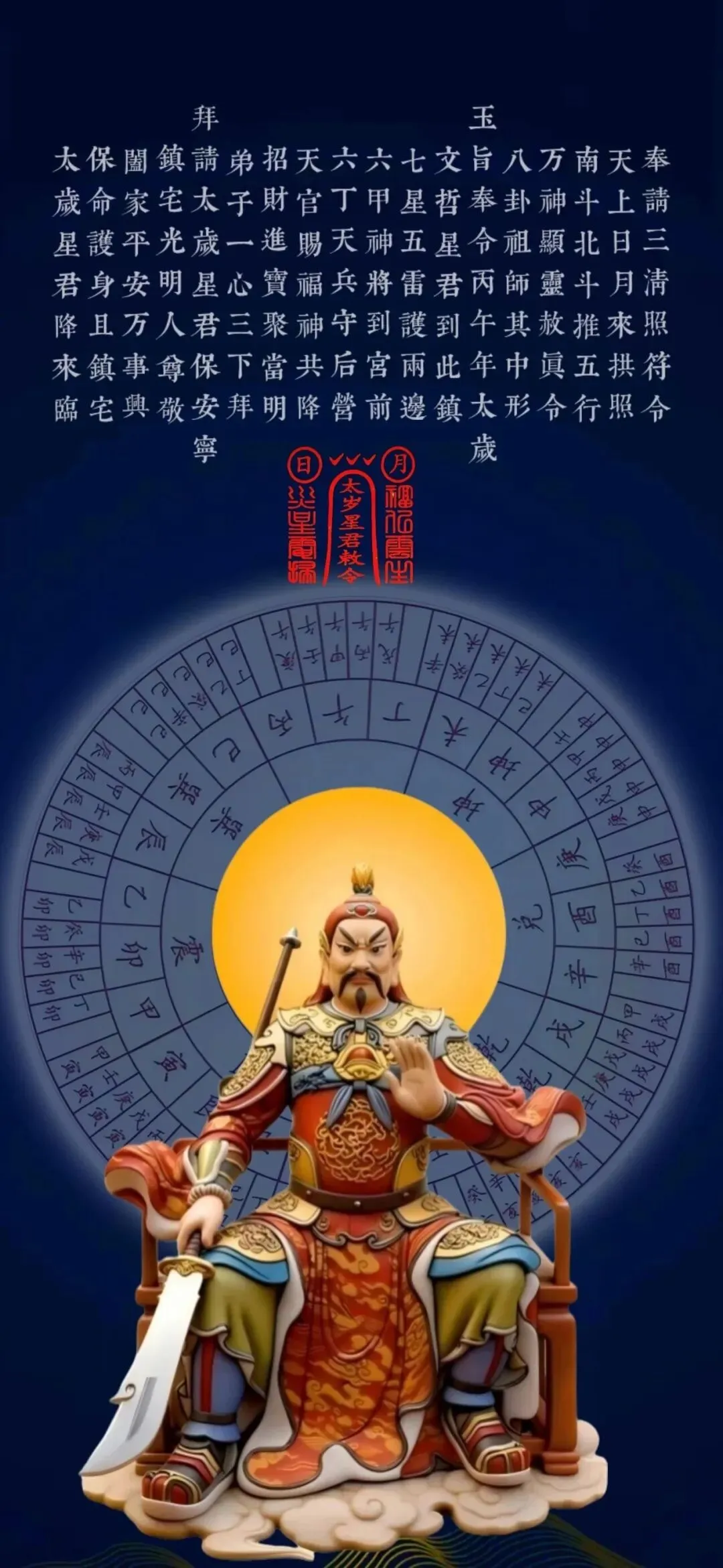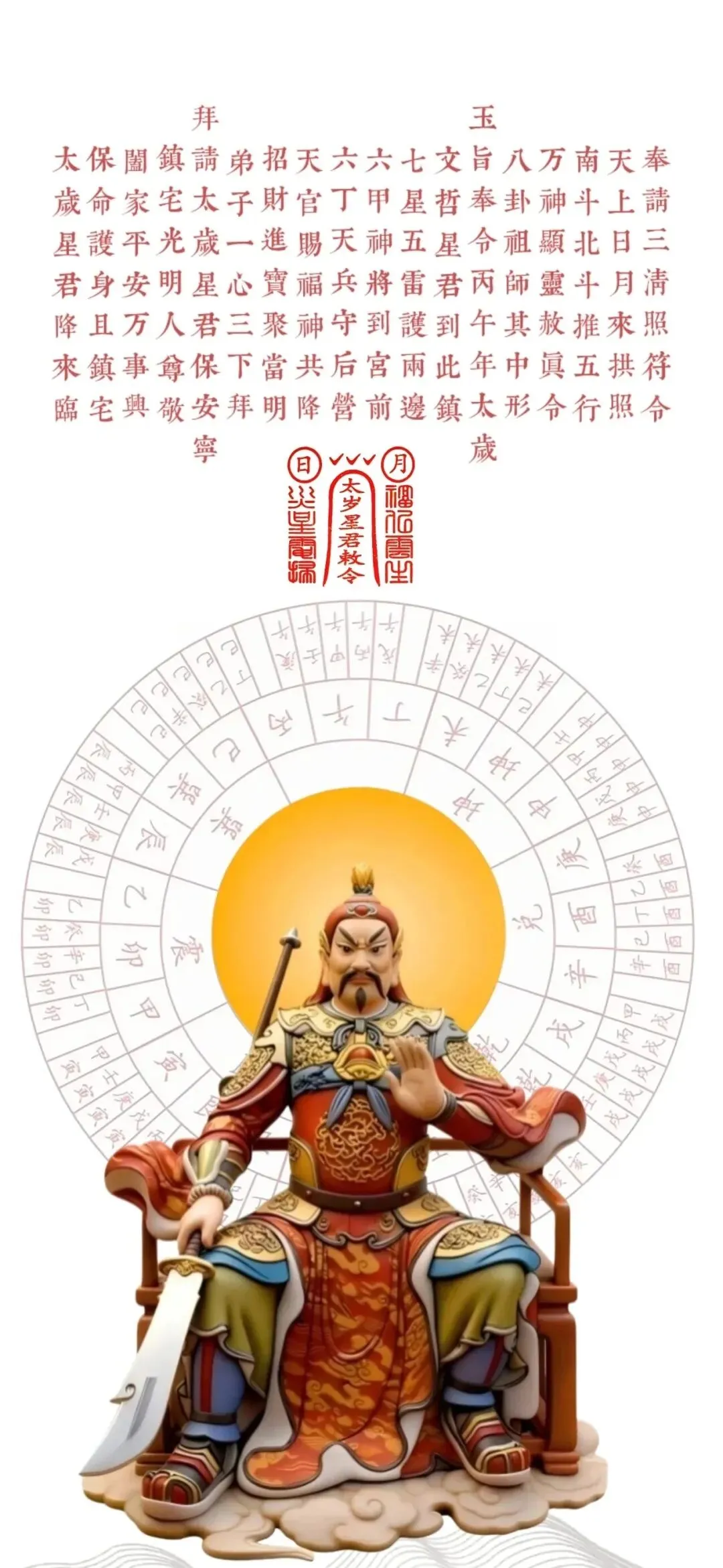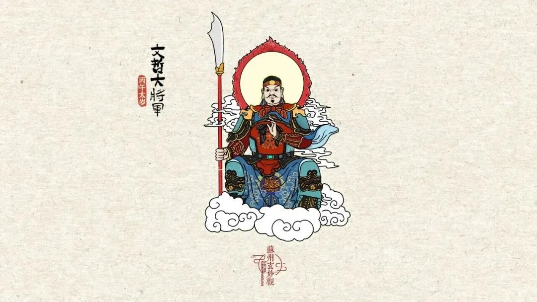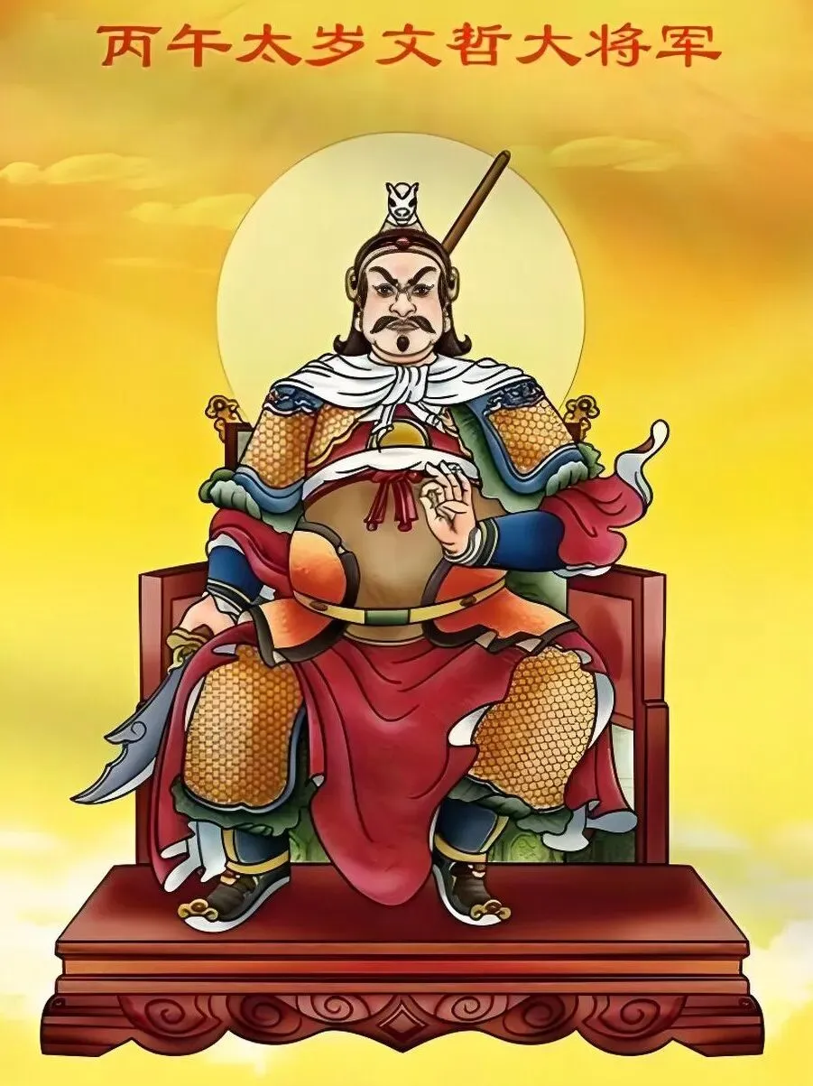 文哲大将军掌管全年吉凶祸福,监察人间善恶,尤其守护生肖马(午)之人。