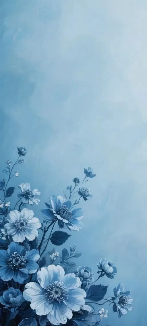 Share | 蓝色花卉-纯色手机壁纸