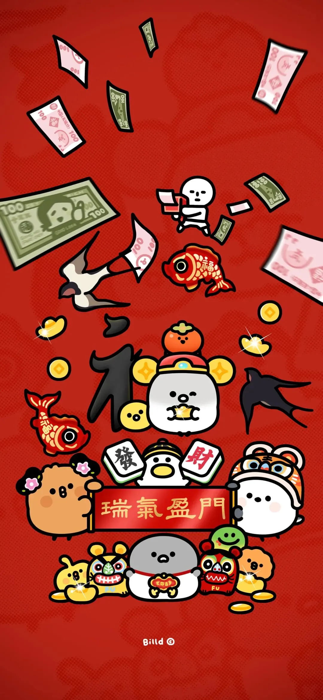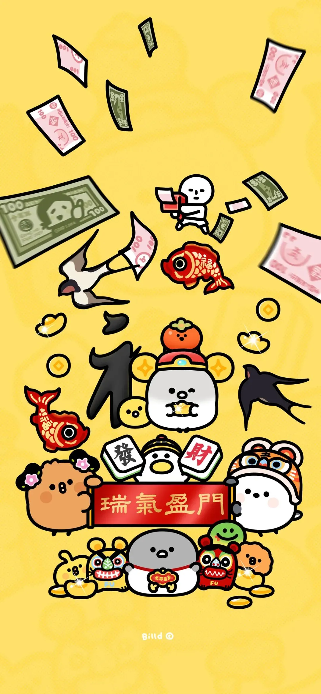 国风中式吉祥手机壁纸:阴阳太极、八方来财、毛毡福语、福气蝶蝶的多元魅力