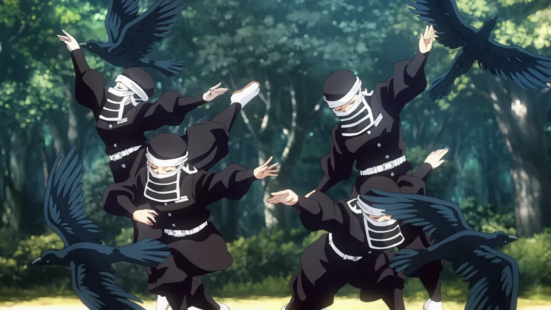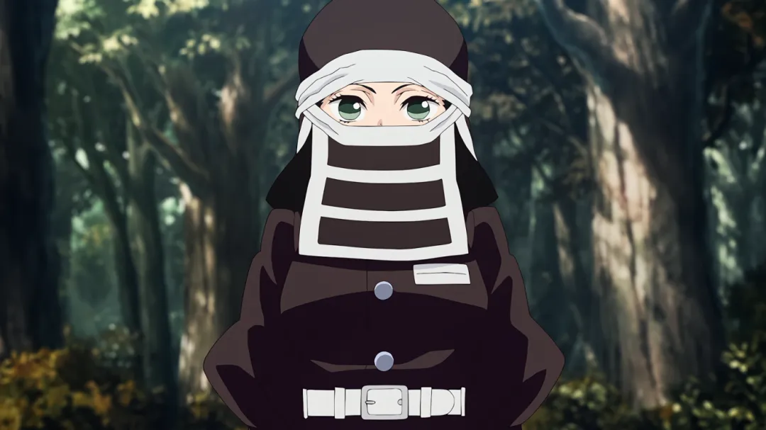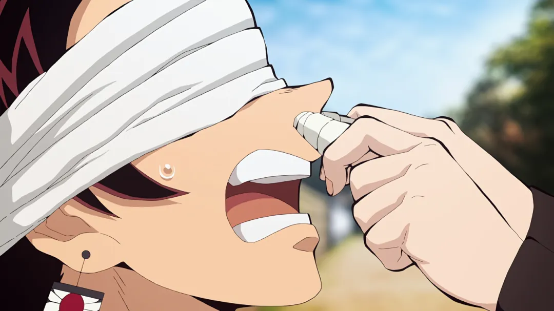 搞笑的场面:锻刀村位置十分隐蔽,刀匠们的存在对鬼杀队也十分重要,位置不能暴露。出发时隐队员给炭治郎蒙上了眼睛,但他鼻子太灵敏能嗅到路线啥的于是给他鼻子也堵上了,哈哈。