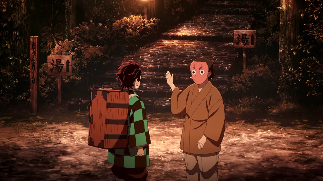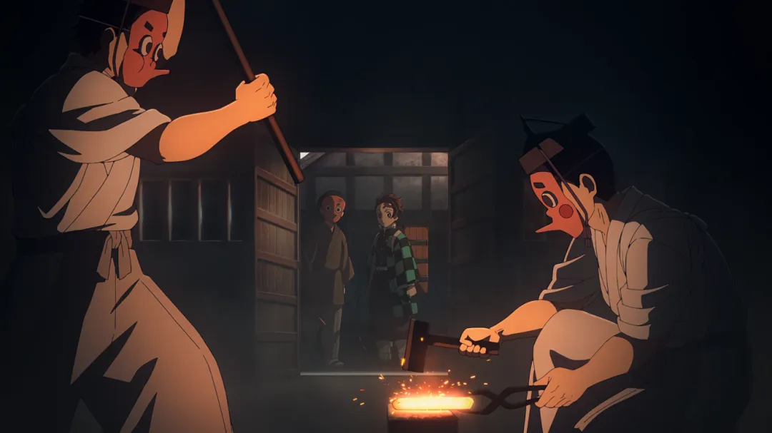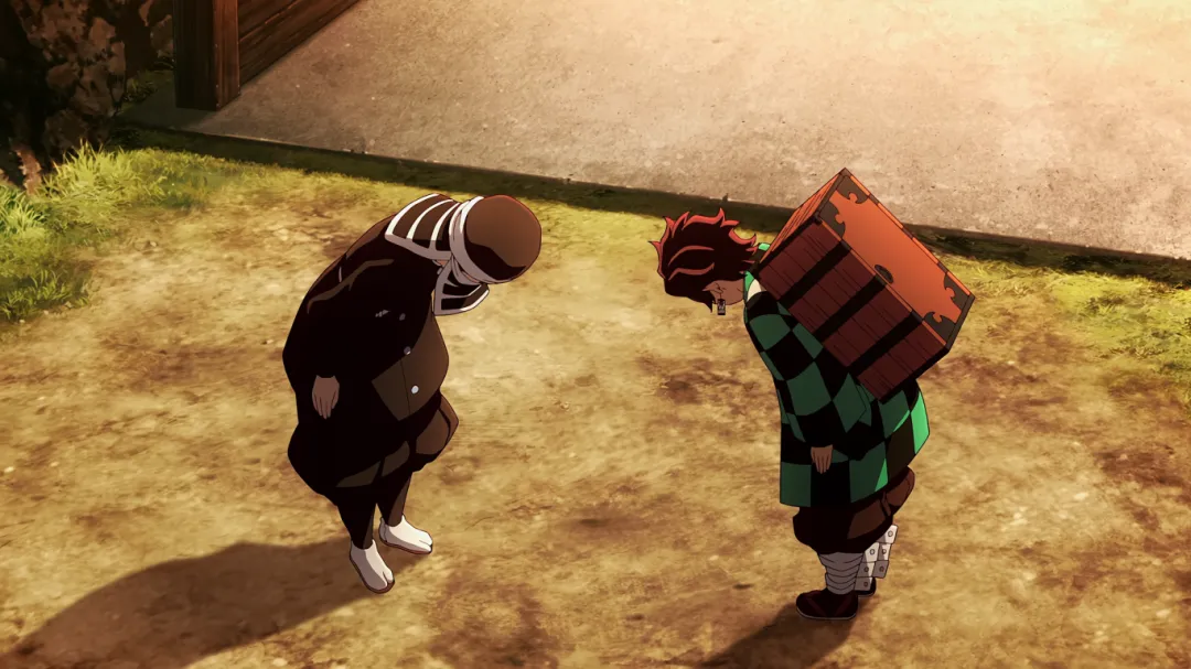 抵达锻刀村后,炭治郎先去拜访了村长。炭治郎表现的态度十分尊敬,得到了村长的认可。告诉炭治郎会想办法让钢铁冢给他锻刀,让他这段时间好好休息,泡泡温泉啥的。