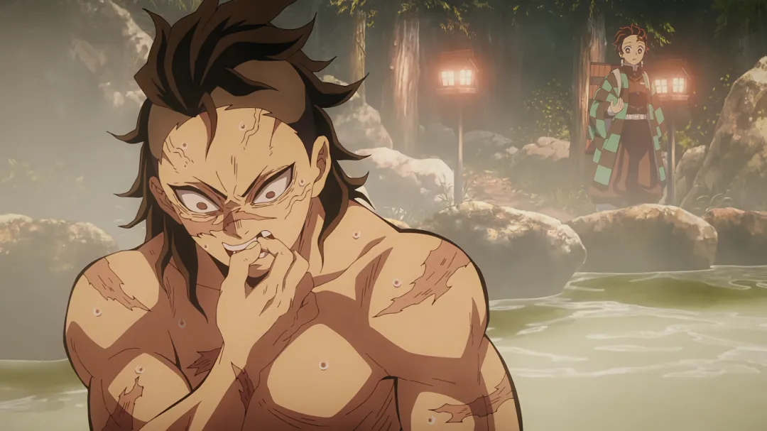 告别蜜璃后,炭治郎上山泡温泉遇到了不死川玄弥。