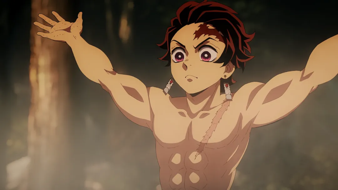 隔天,炭治郎进山修炼,寻找秘密武器。