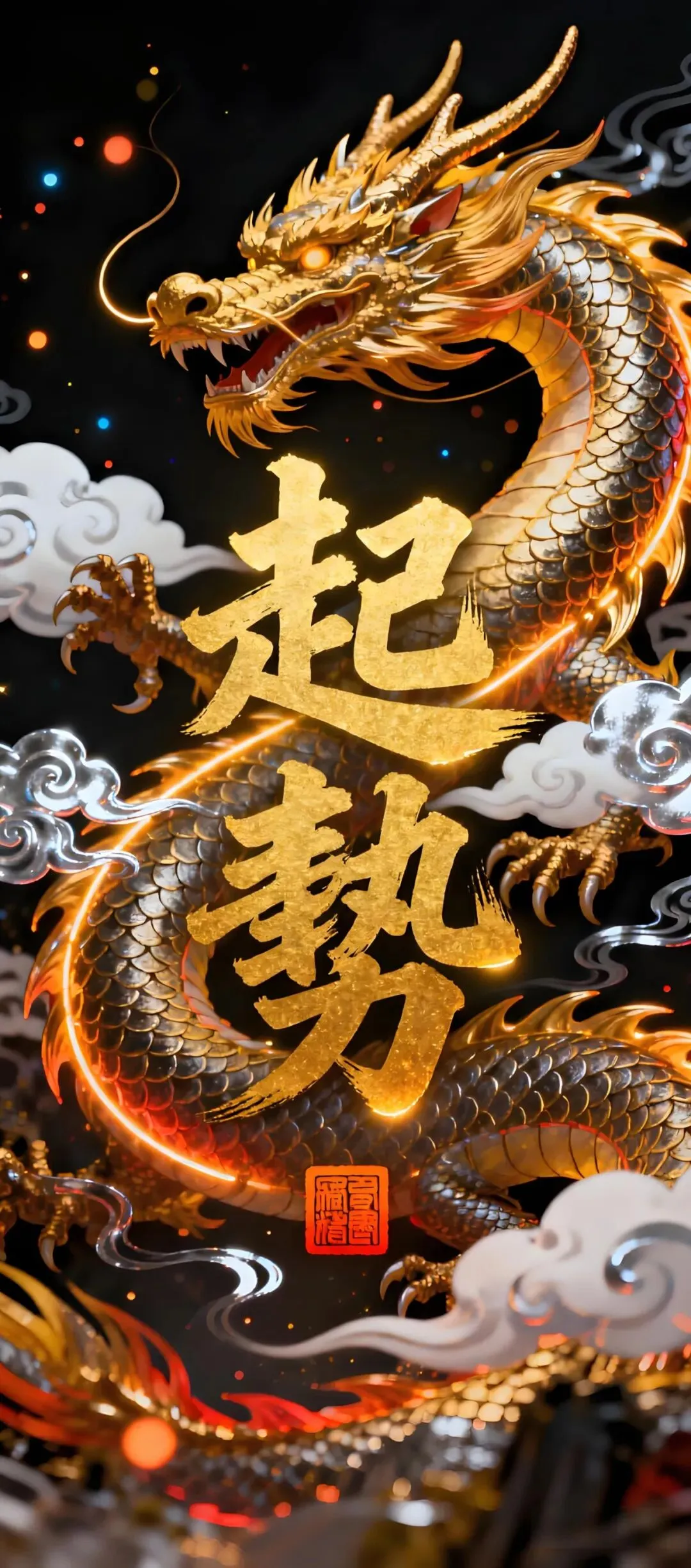 国风吉祥手机壁纸:从毛绒福语到金龙起势