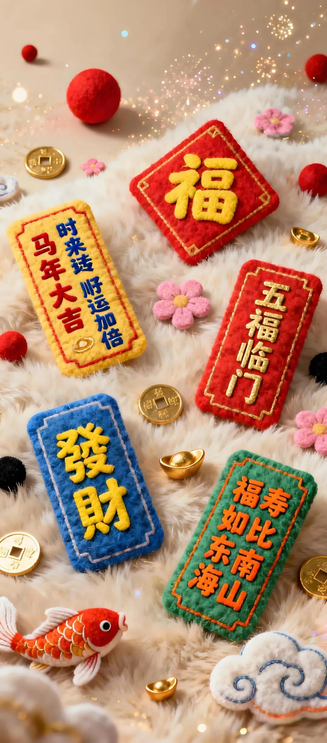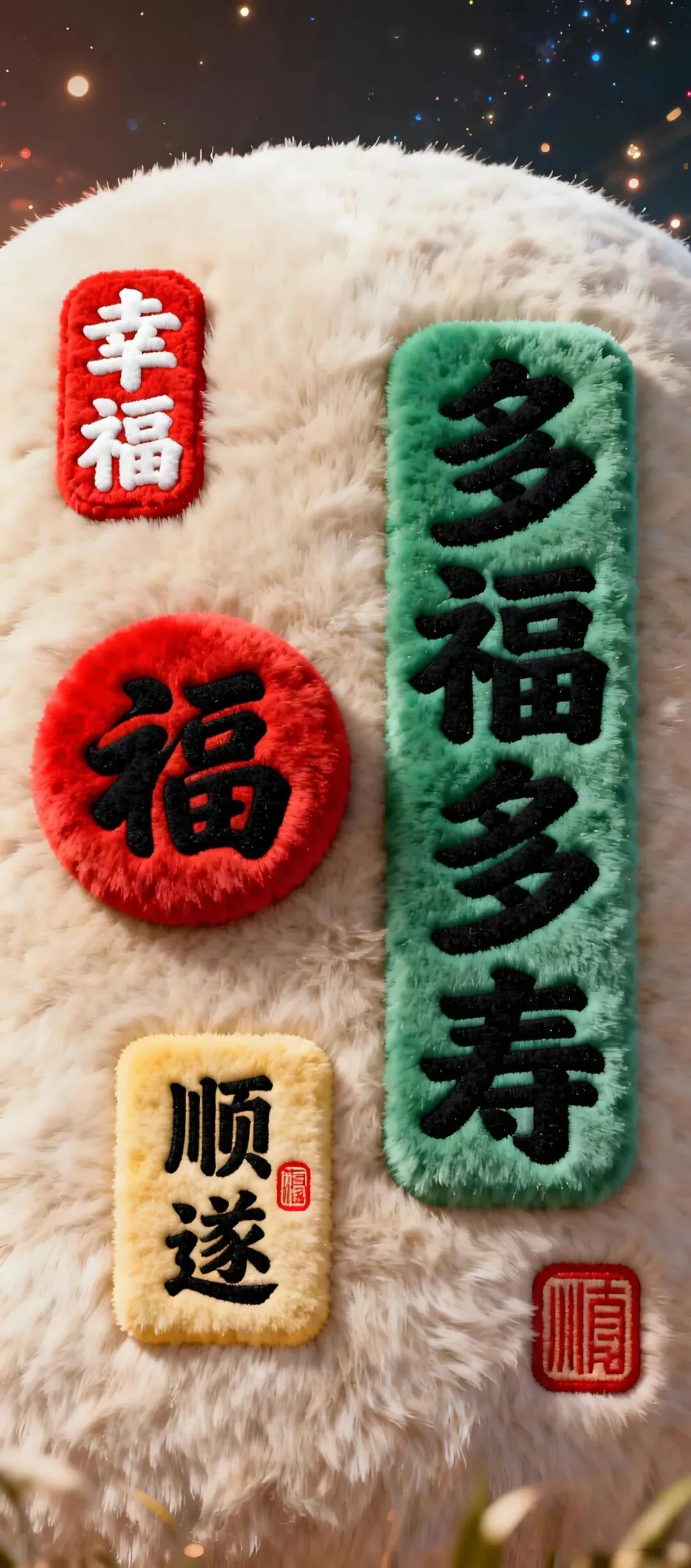 >国风吉祥手机壁纸:从毛绒福语到金龙起势