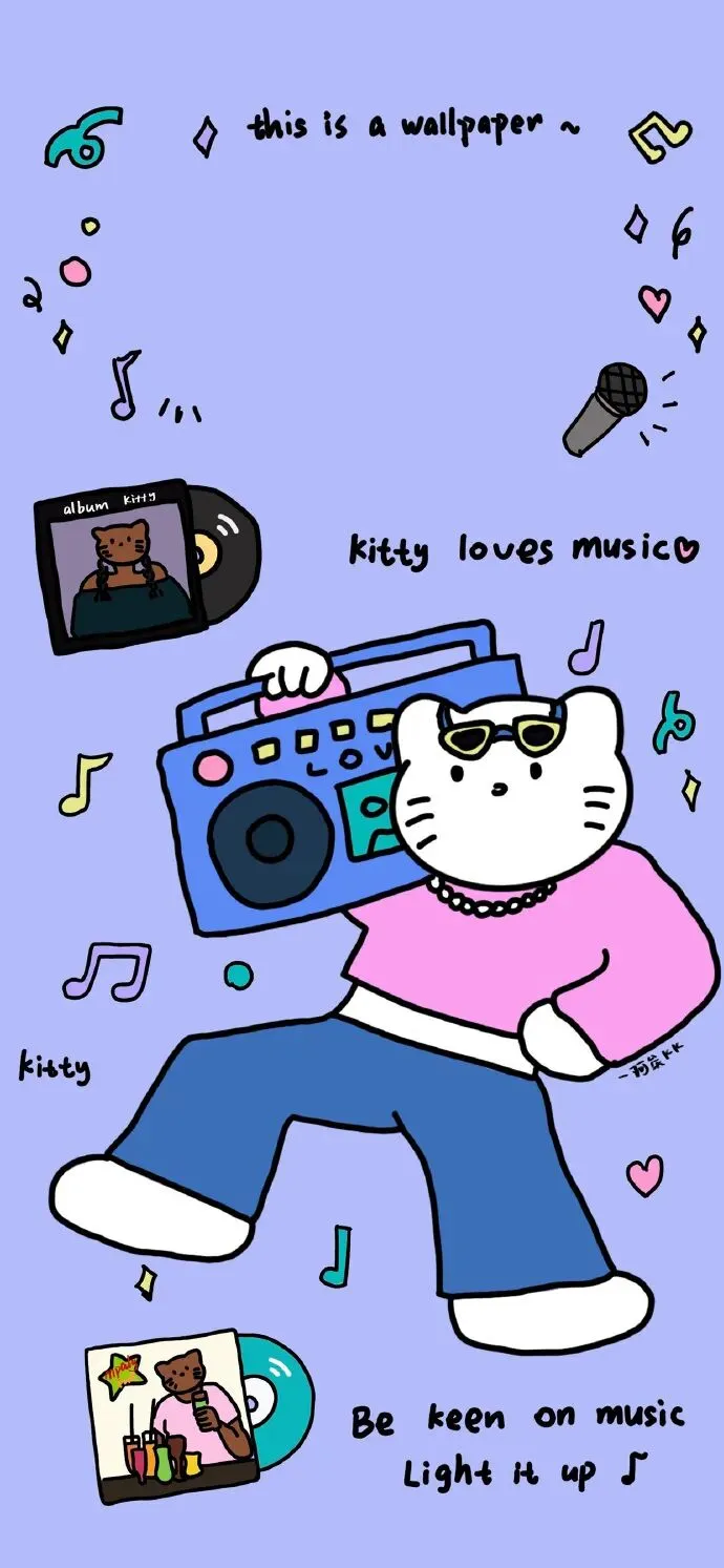 Kitty壁纸|超萌黑皮Kitty手机壁纸