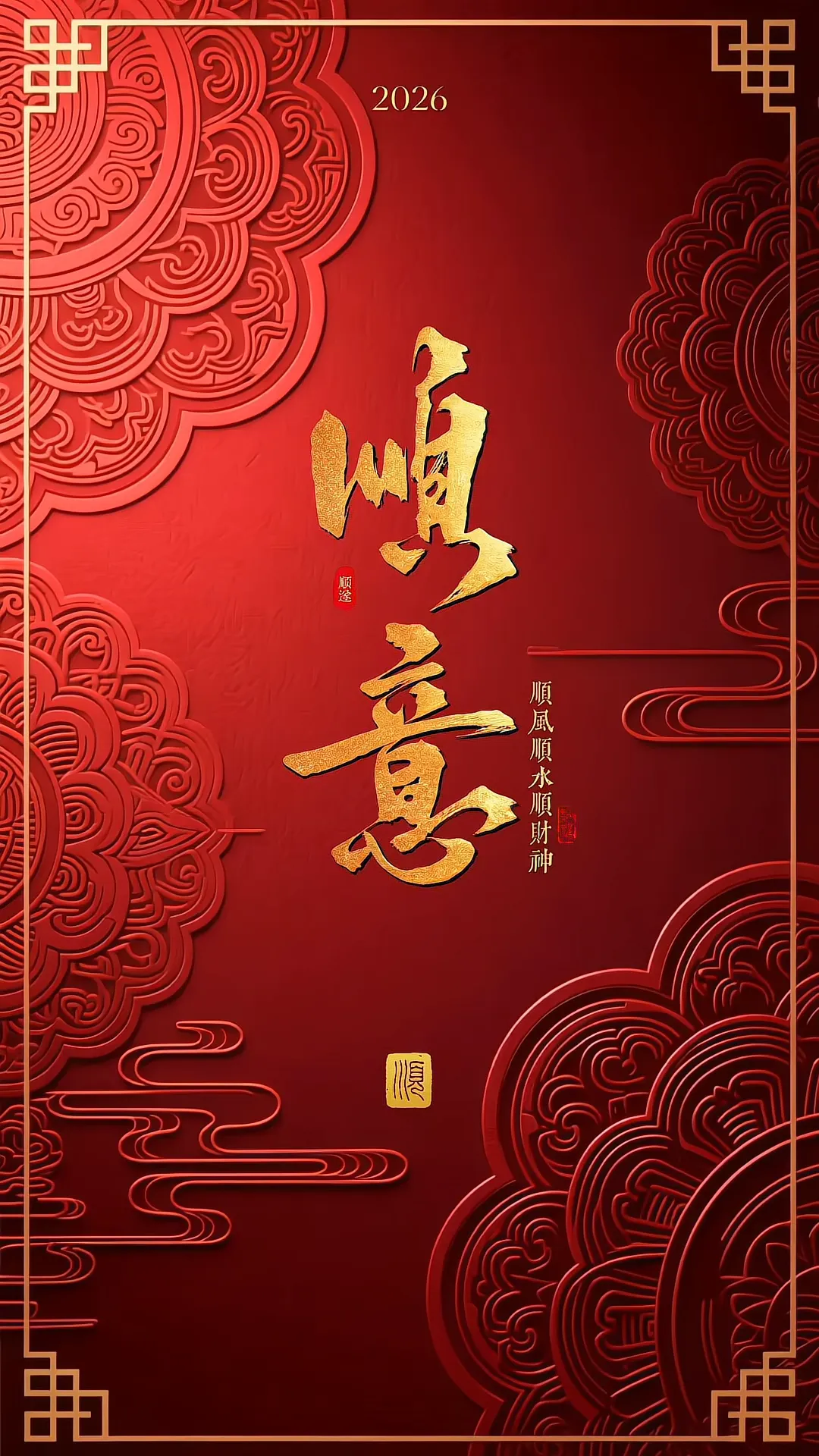国风吉祥语手机壁纸!2026!诸事皆顺!
