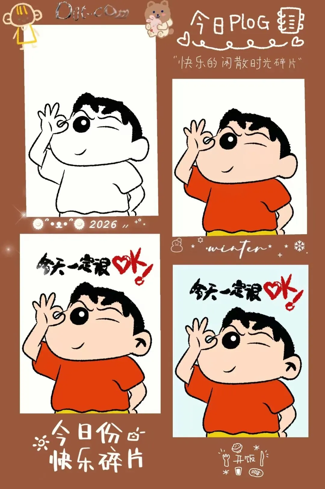- 参考图:以这张“OK手势”小新壁纸为参考,重点观察人物比例、色彩搭配和文字风格。