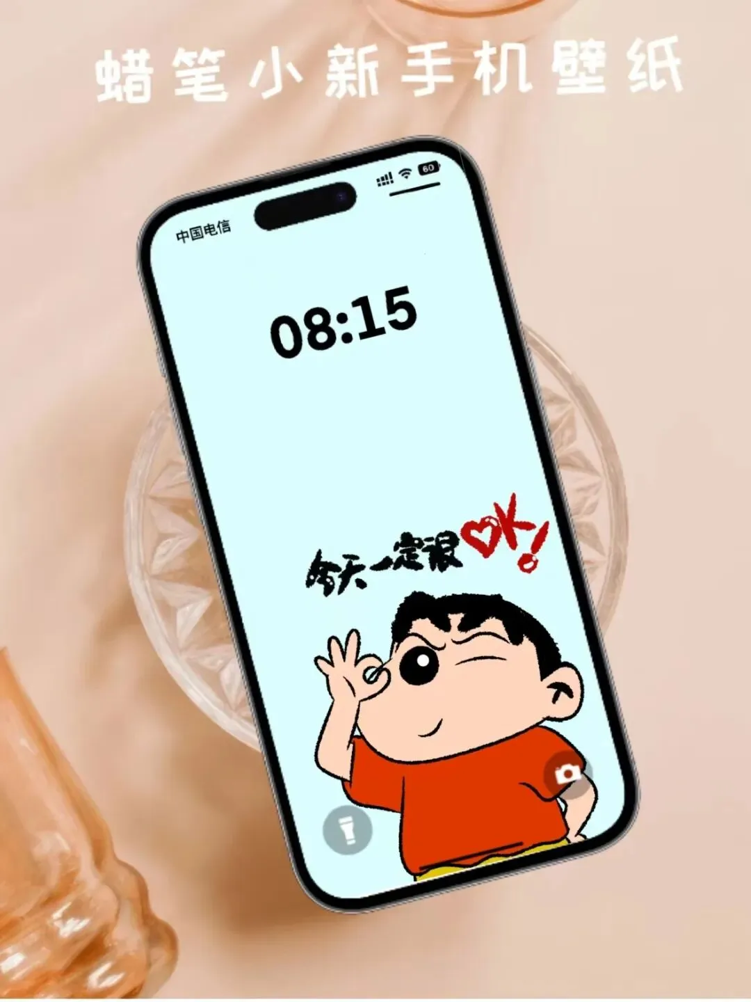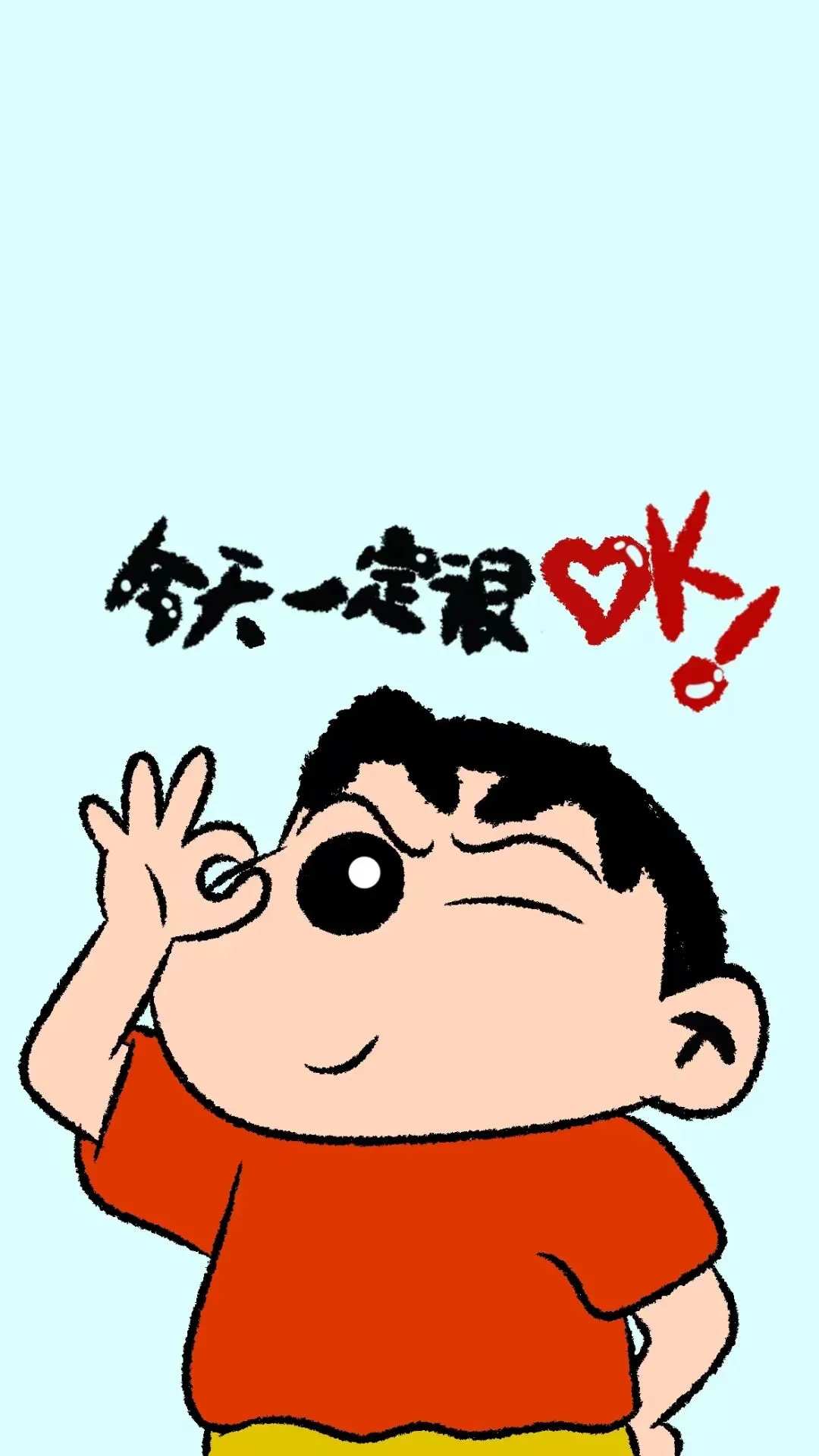 4. 最终效果:点亮手机屏幕,浅蓝背景上的小新比着OK手势,搭配“今天一定很OK!”的文字,元气满满,每次解锁都能收获好心情。