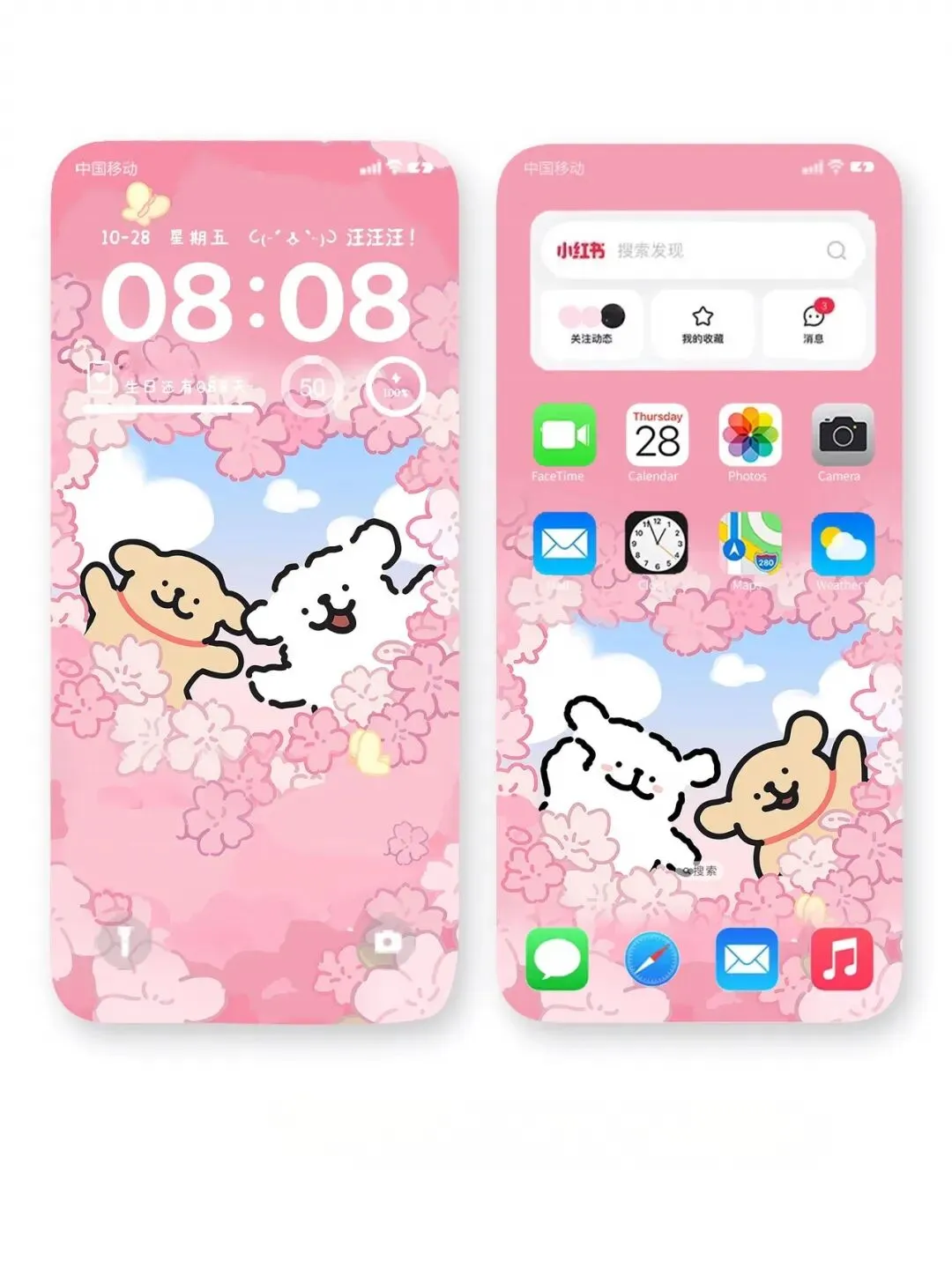 >可爱线条小狗·春日游系列|手机壁纸