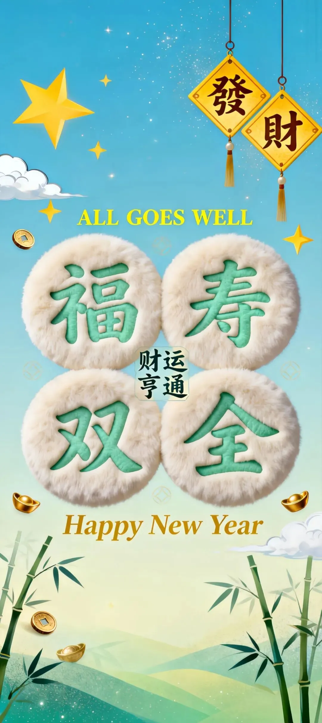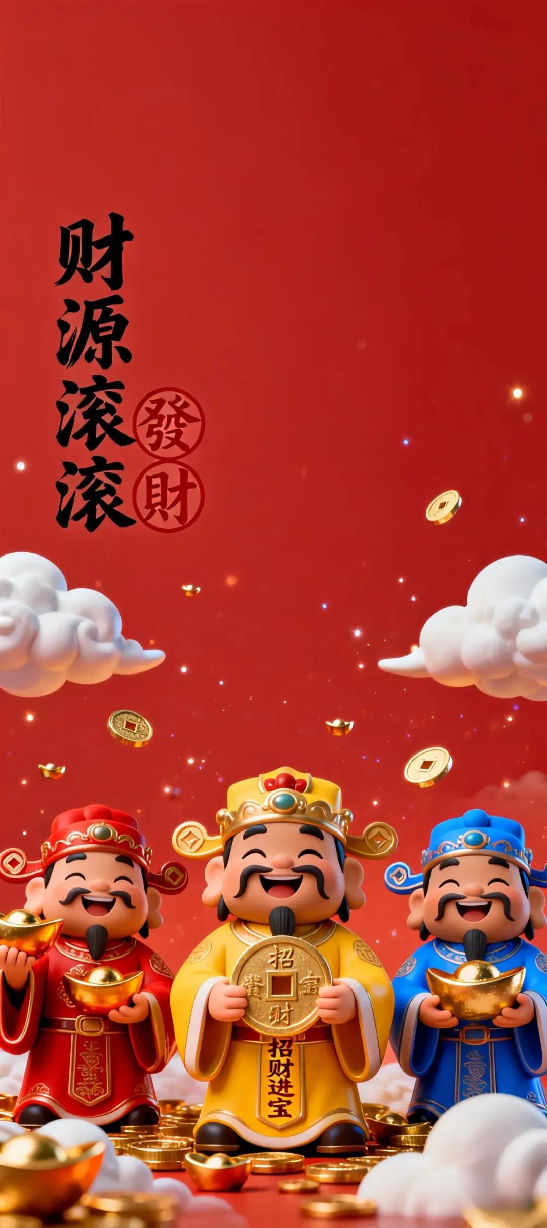 多元吉祥手机壁纸:福星高照、大吉大利、财神送福、福寿双全