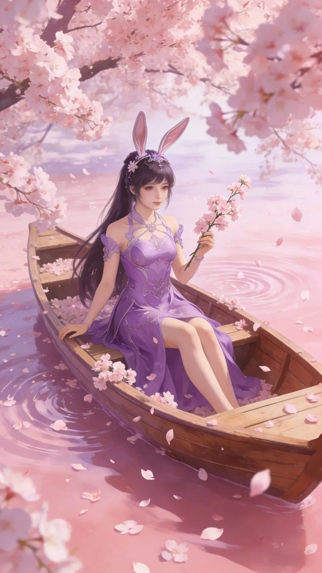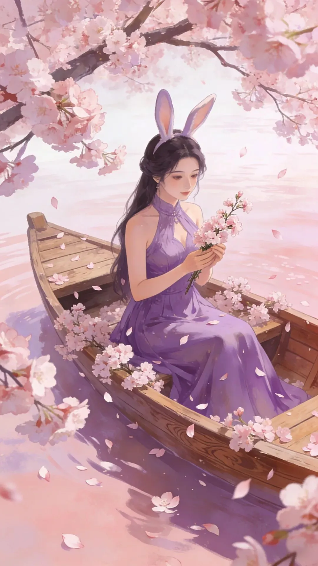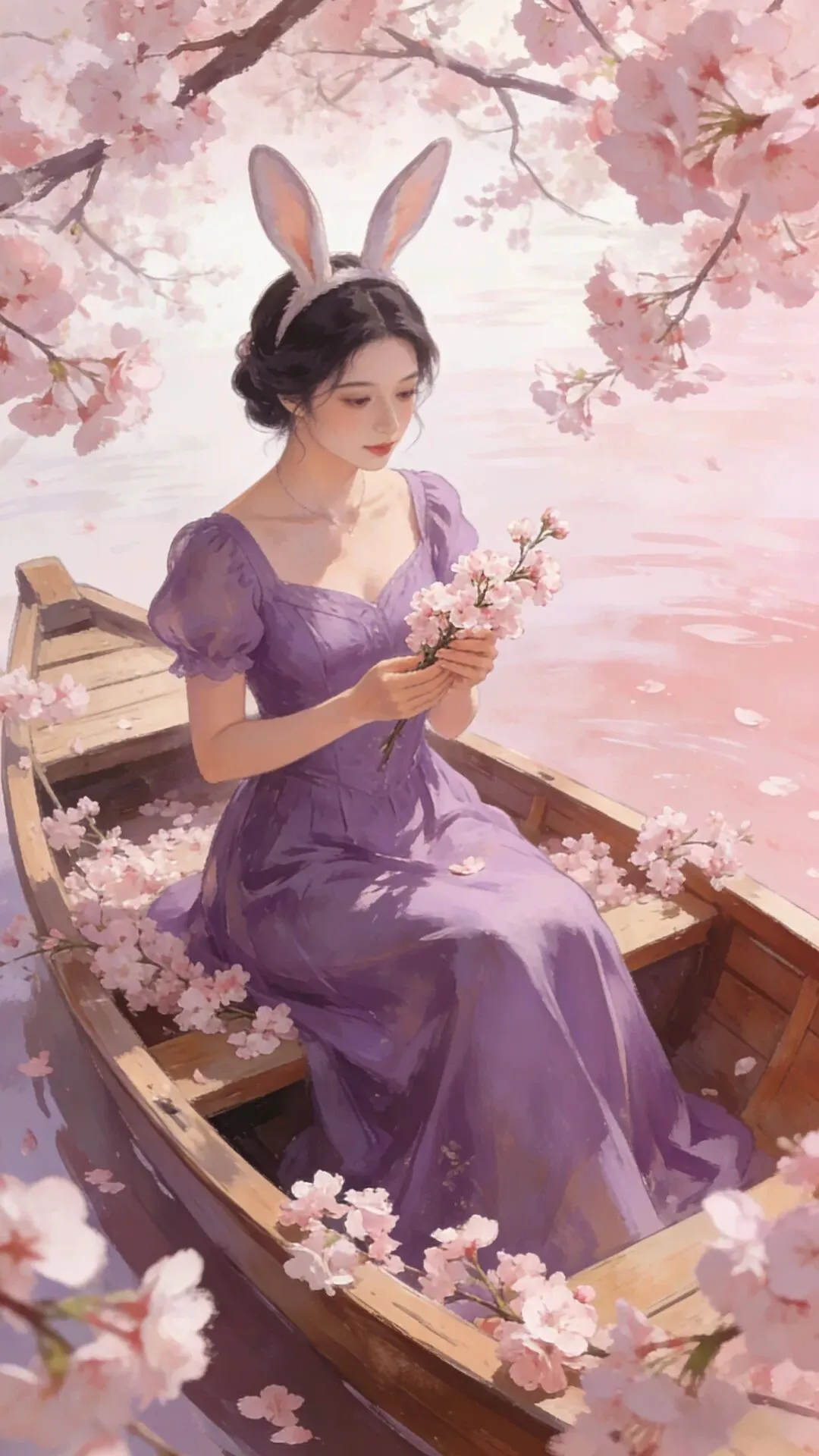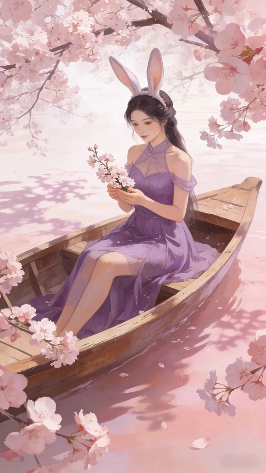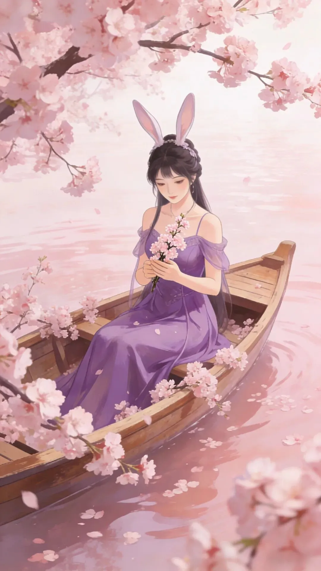 愿你如这樱花般温柔绽放,似春水般澄澈安宁。紫衣轻扬,兔耳灵动,岁月静好,万事顺遂,心有繁花,笑迎暖阳。_ _🖊️🖊️