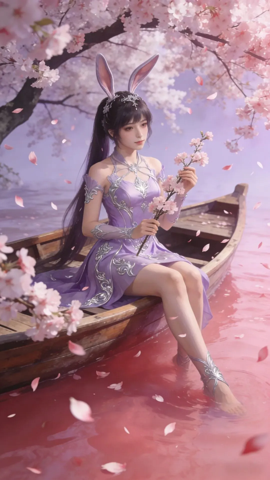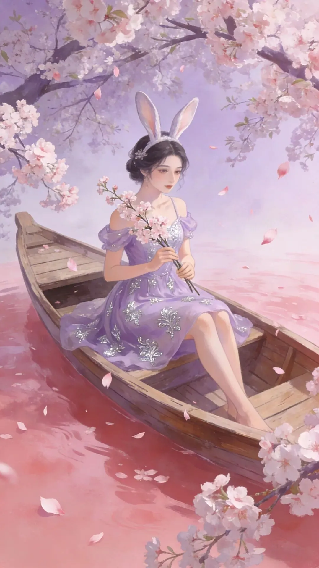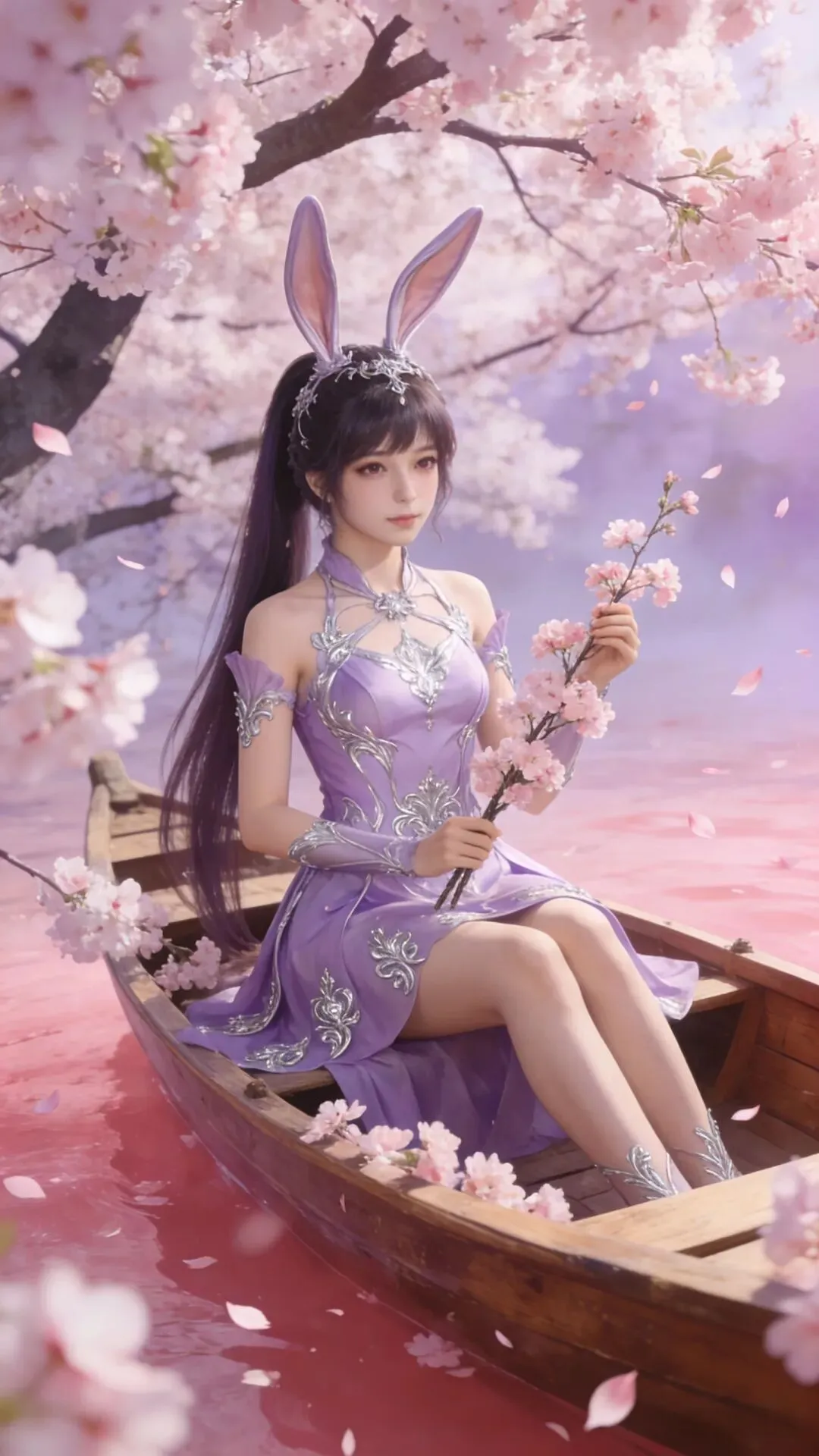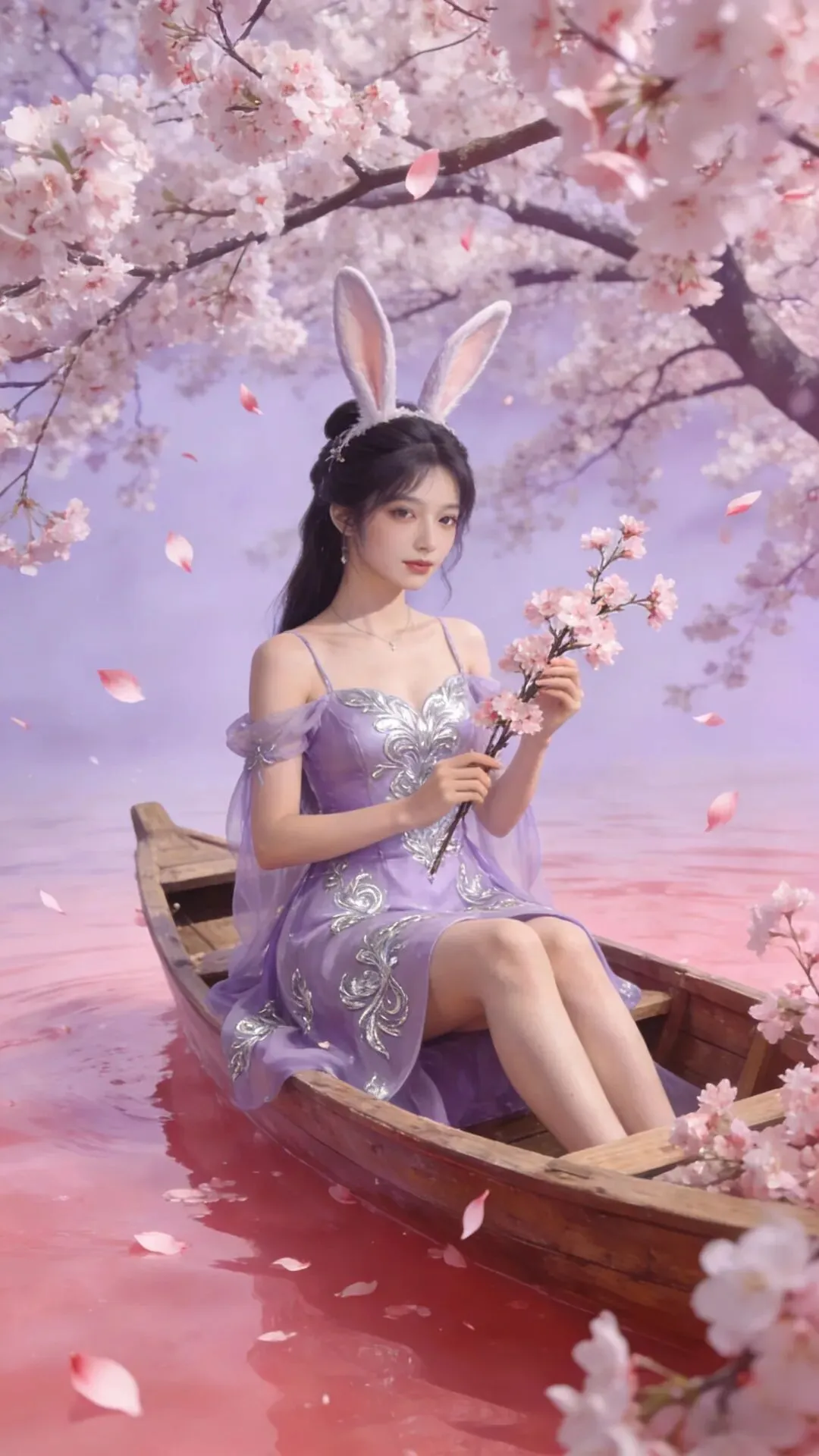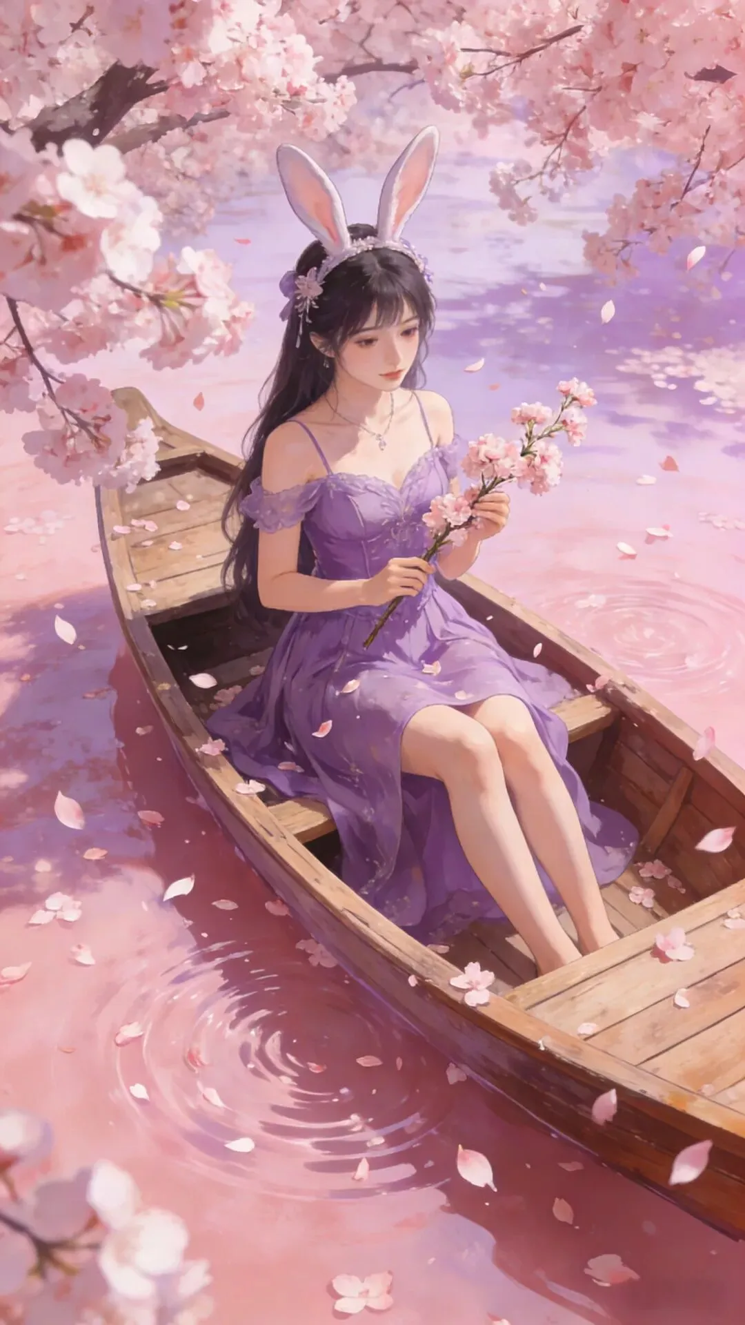 愿你如这樱花般温柔绽放,似春水般澄澈安宁。紫衣轻扬,兔耳灵动,岁月静好,万事顺遂,心有繁花,笑迎暖阳。_ _🖊️🖊️