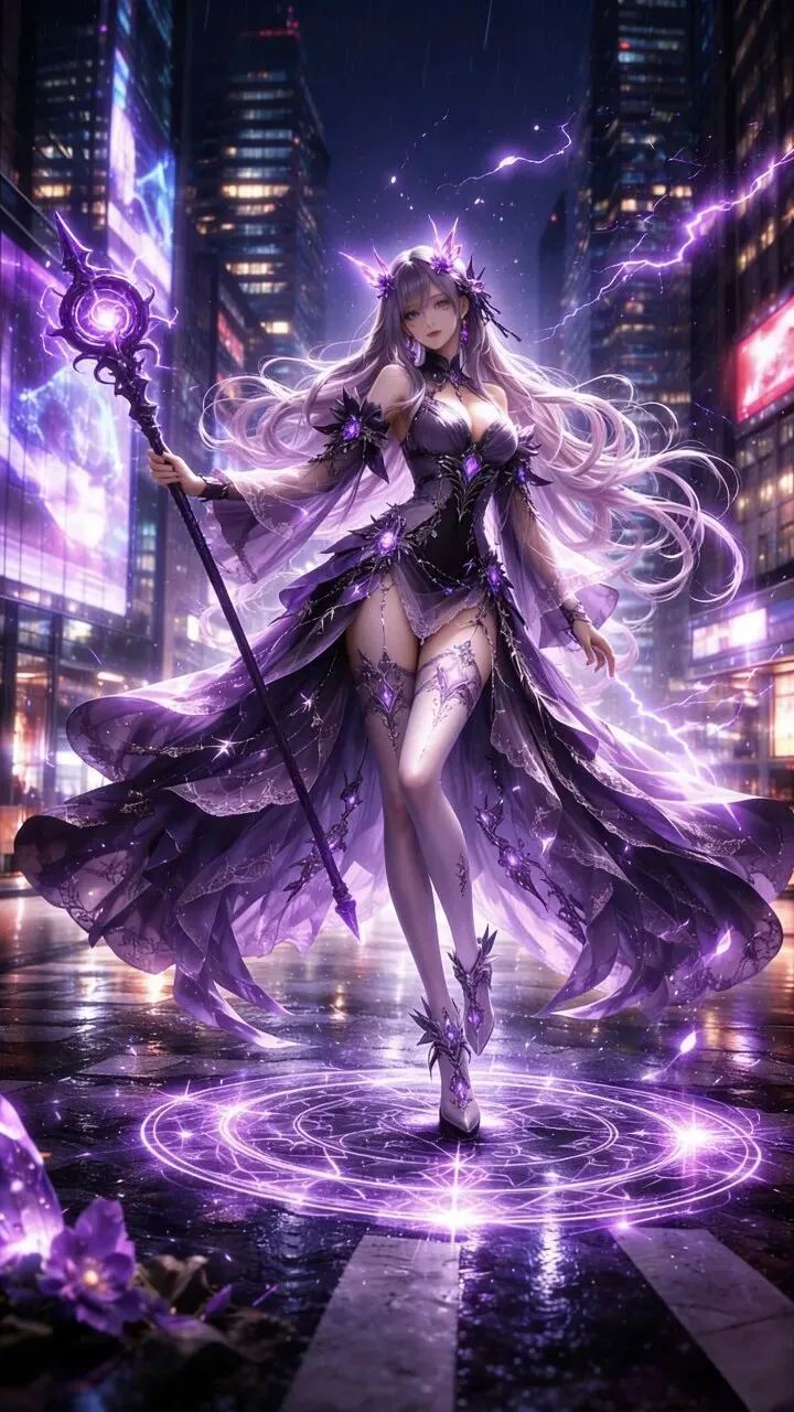 紫电如龙,缠绕法杖,撕裂赛博霓虹;
