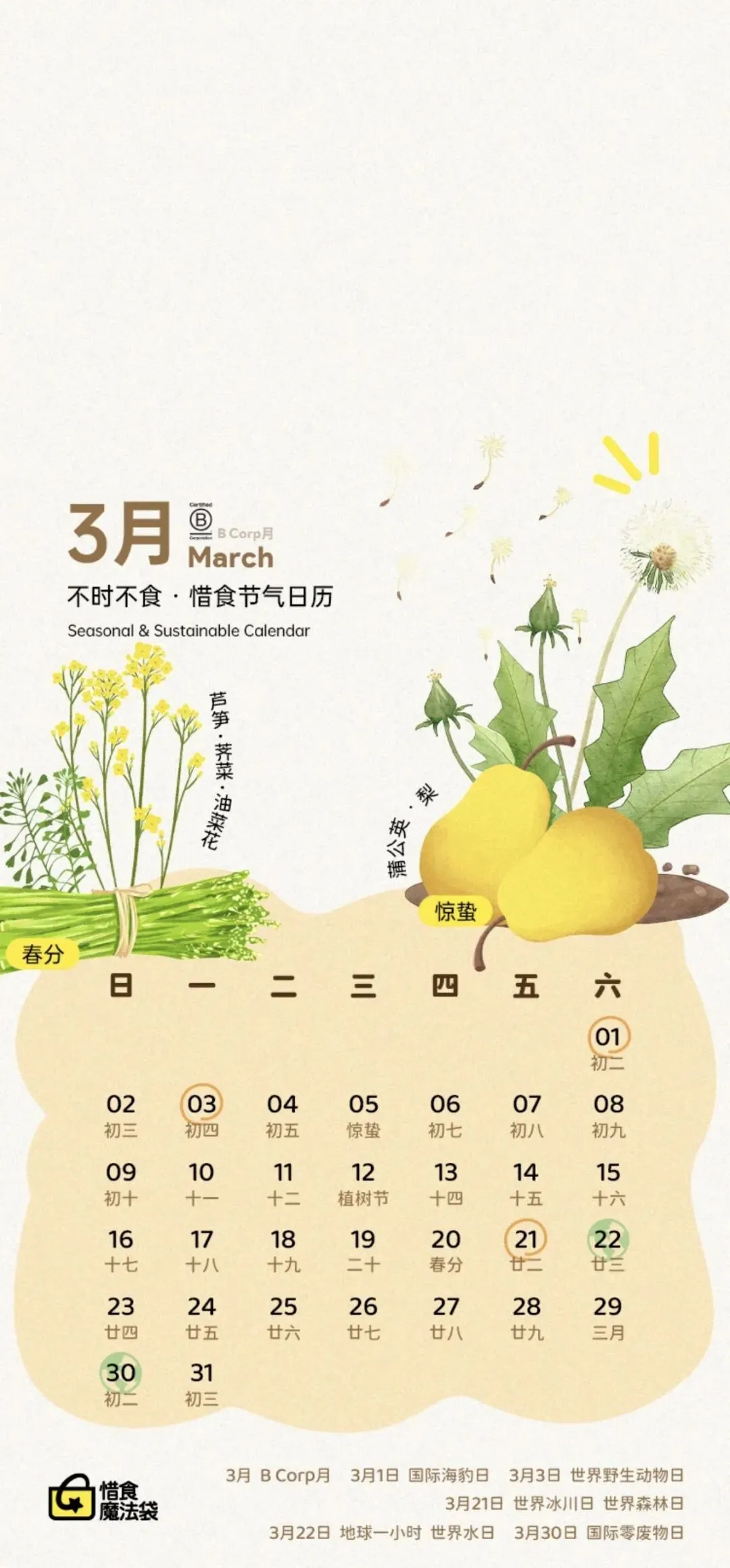 3月手机壁纸(含套图和日历)