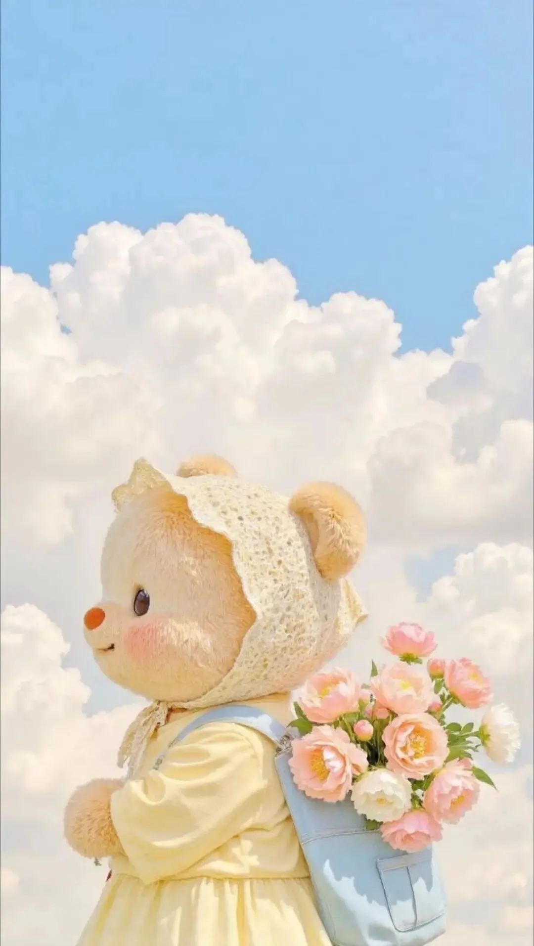 黄色小熊眨眨眼,仿佛在说别愁啦,生活多美好,像它一样可爱。