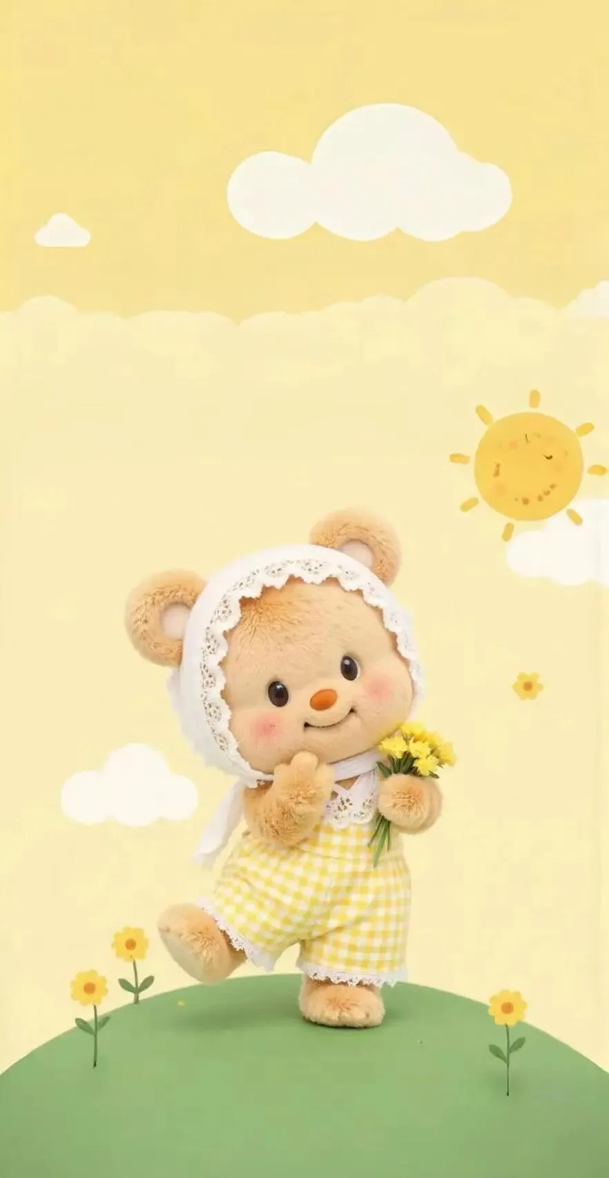 黄色小熊软乎乎,抱着它就像抱着温暖的小太阳,烦恼都被融化啦。
