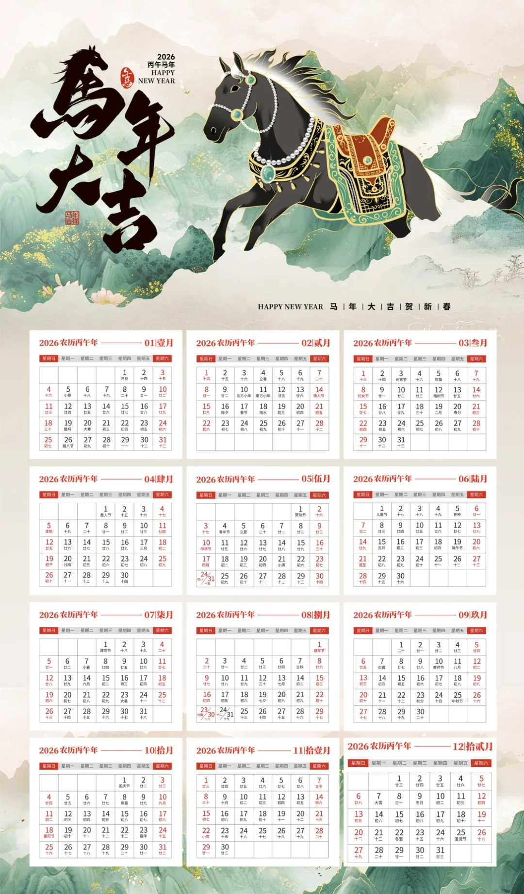 马年手机壁纸50套(文末下载电子版)马年日历/月历/年历电子版(文末下载电子版)