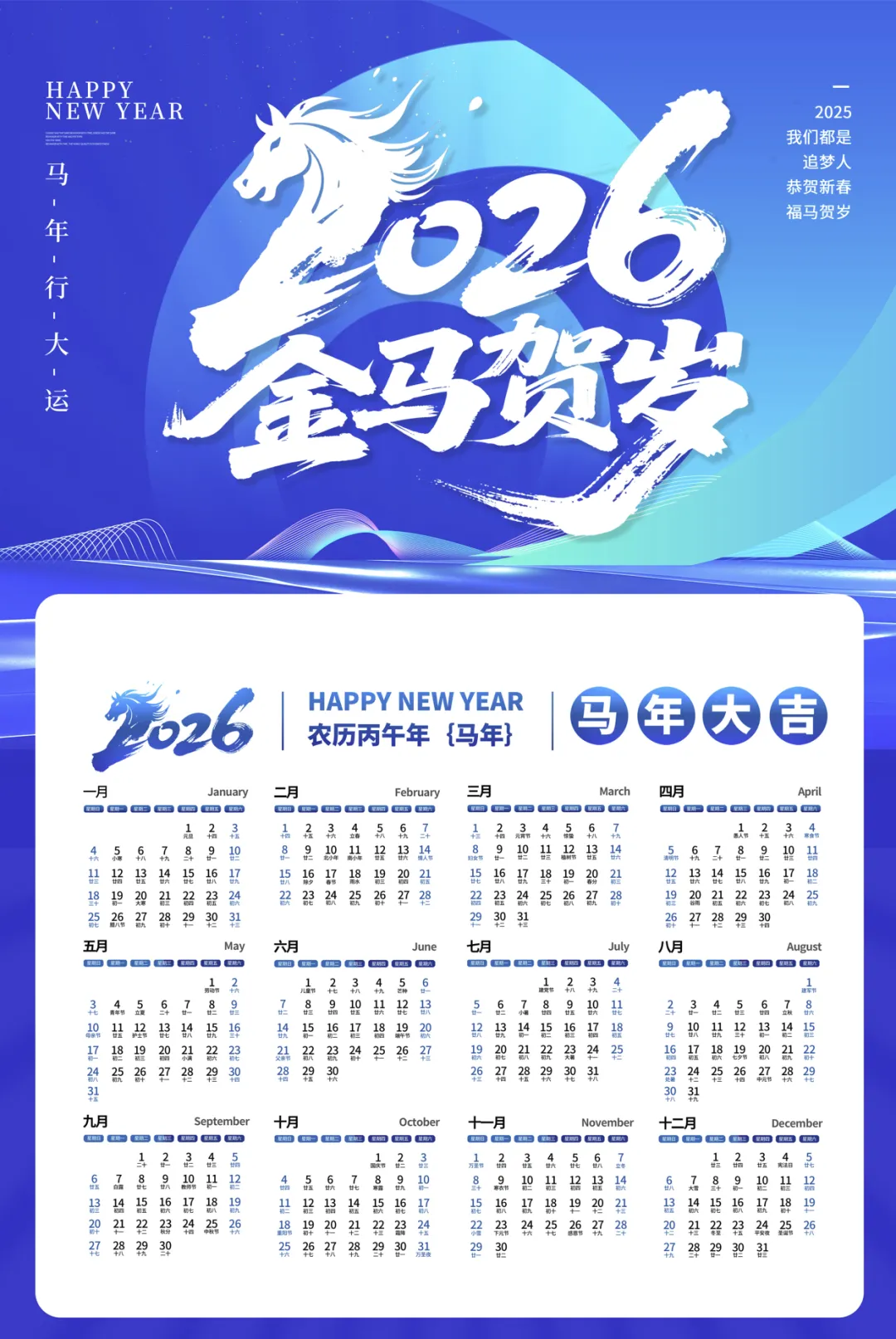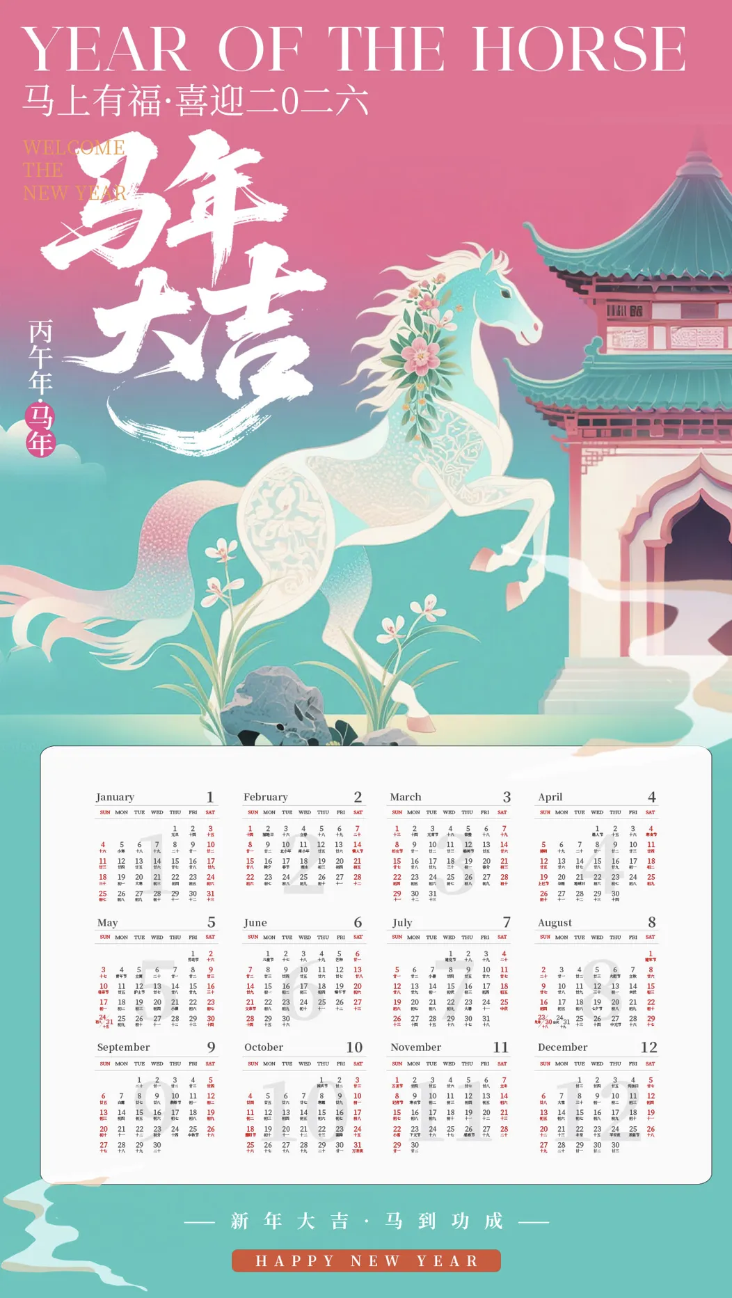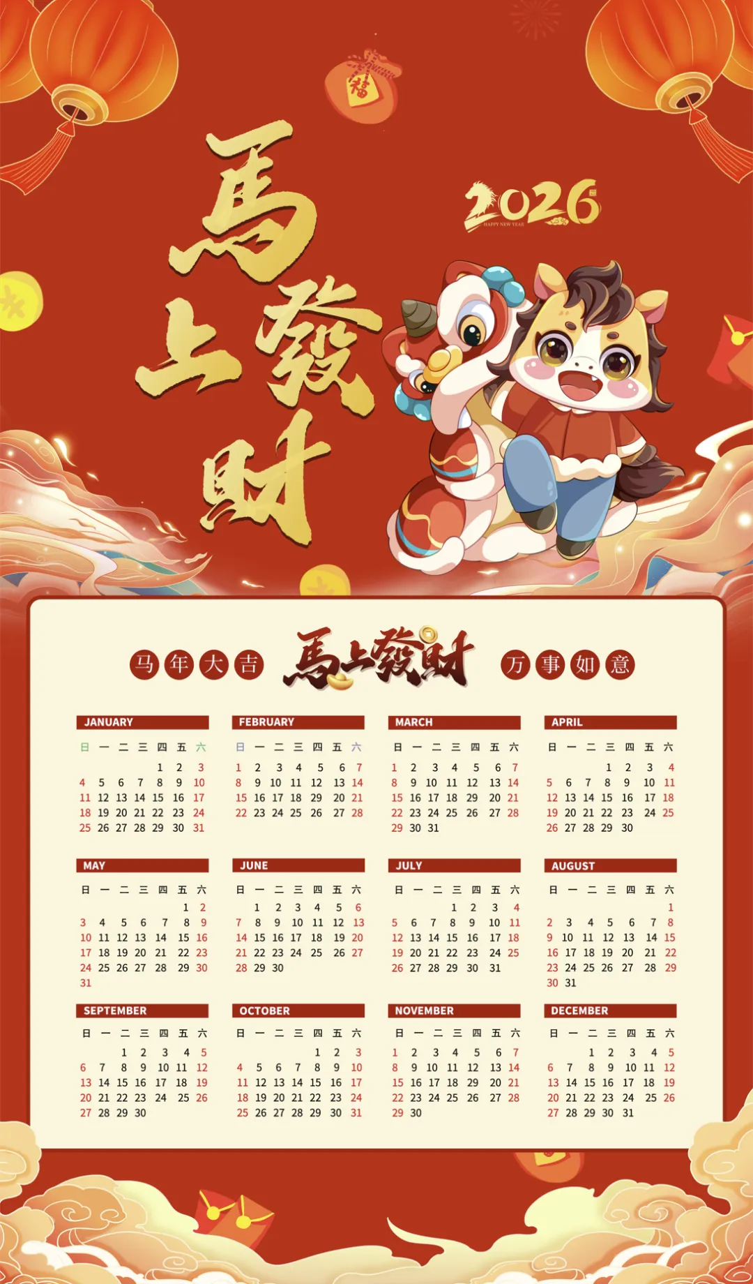马年日历+祝福语+手机壁纸