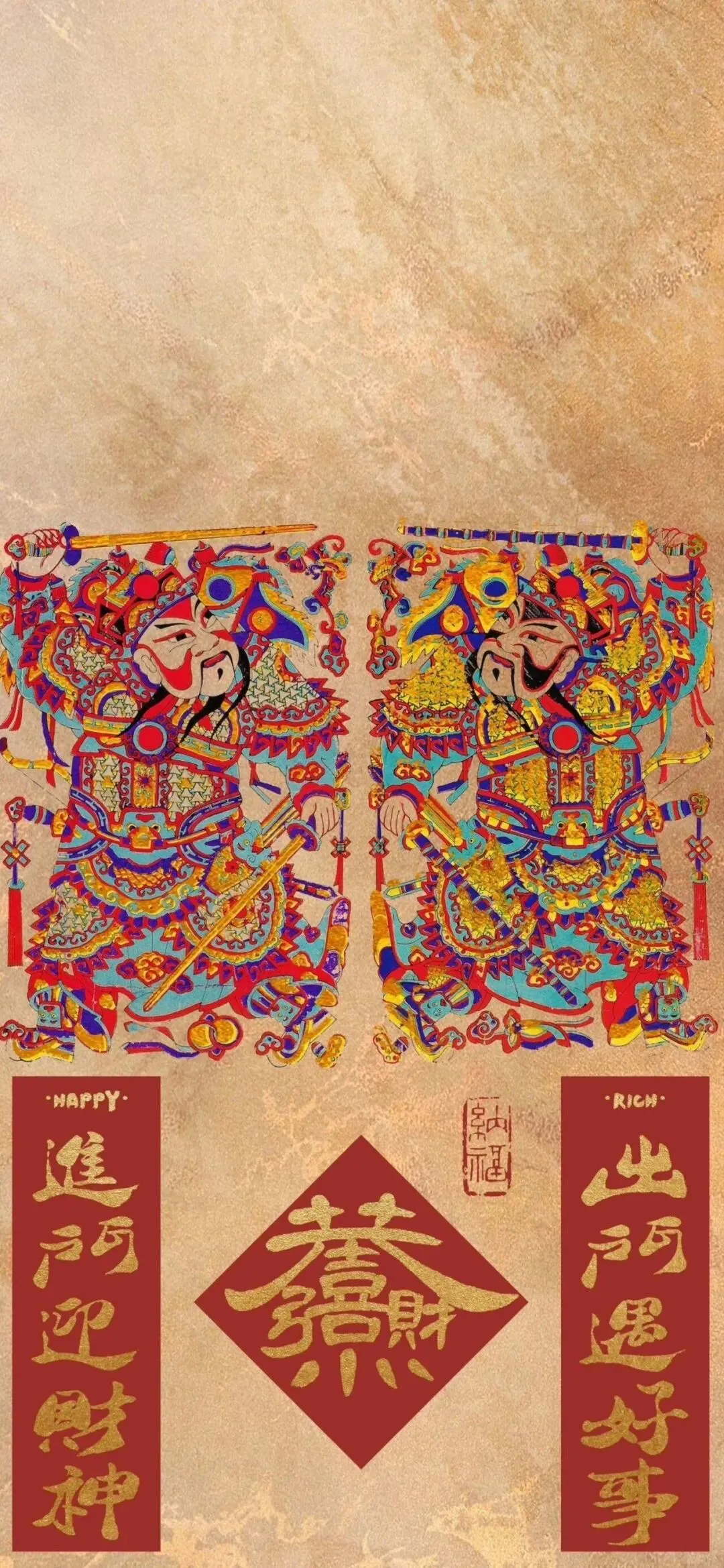 中式吉祥手机壁纸:财字、卷轴祝福、鸿运当头、聚宝盆