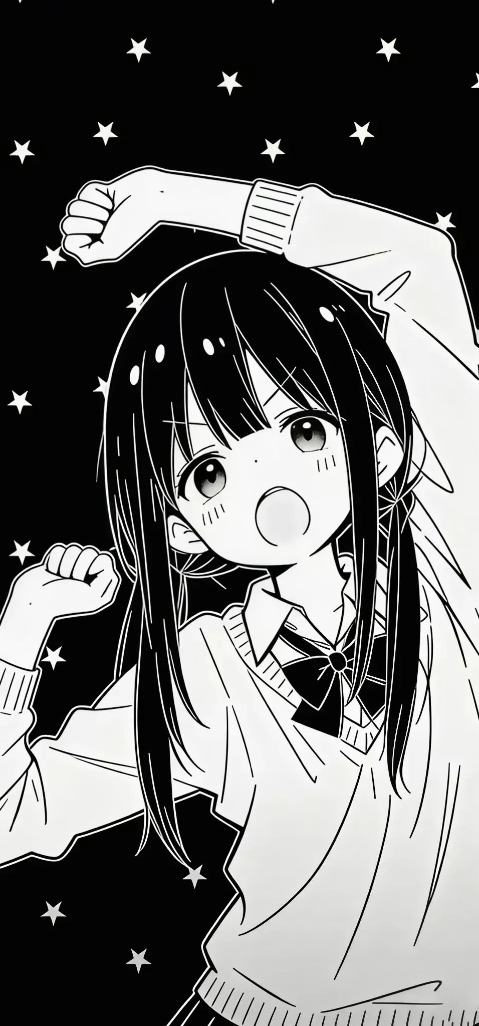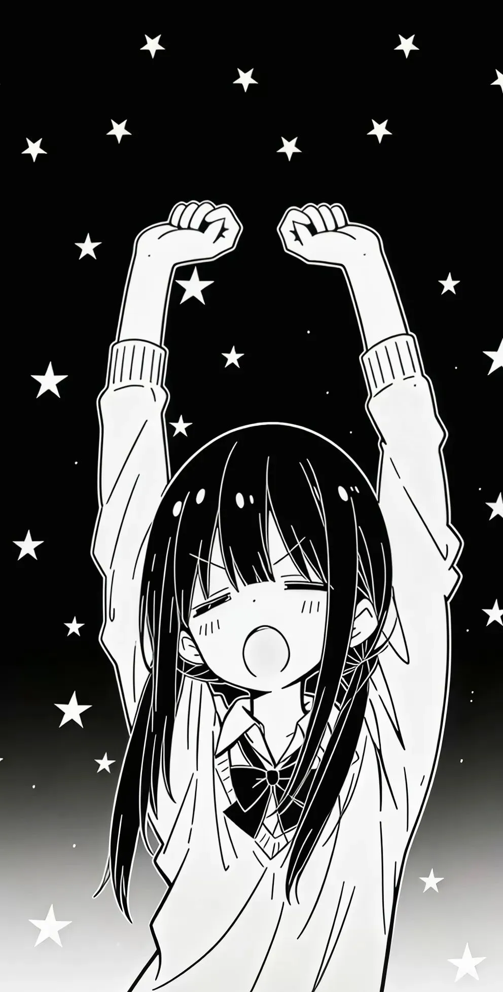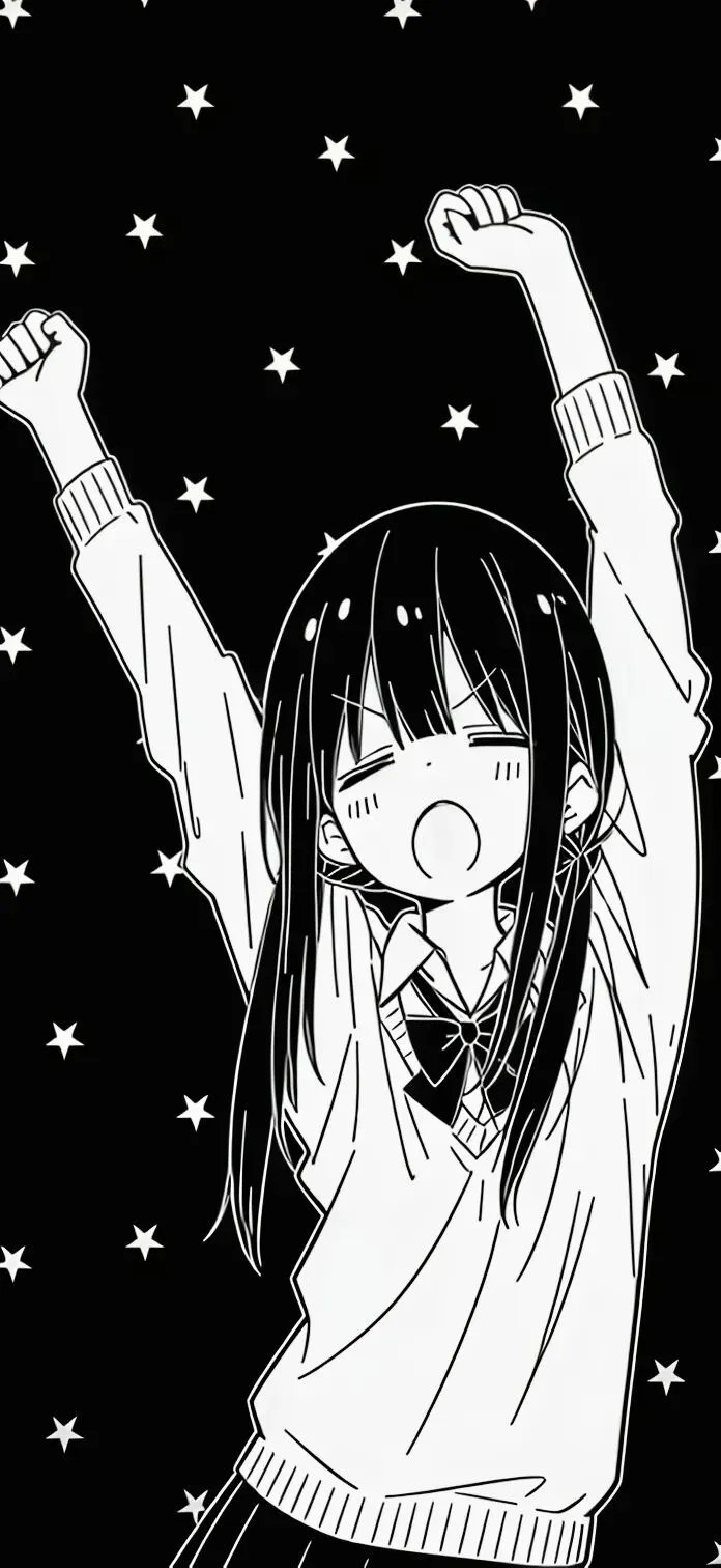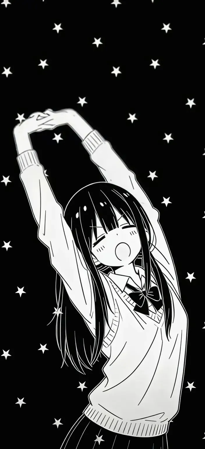 手机壁纸|黑白色 女孩伸懒腰