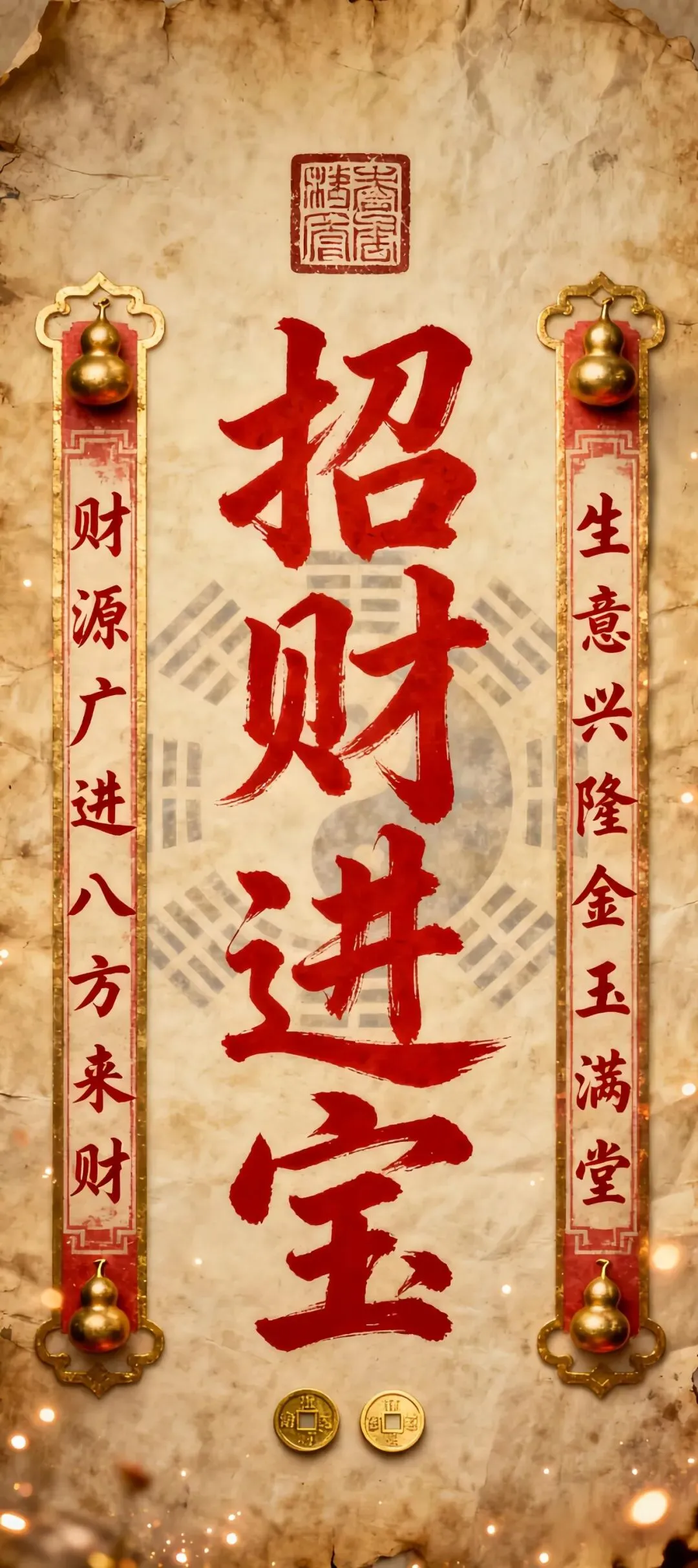 多元吉祥手机壁纸:粉色方块、红金发财、福禄双全、箴言