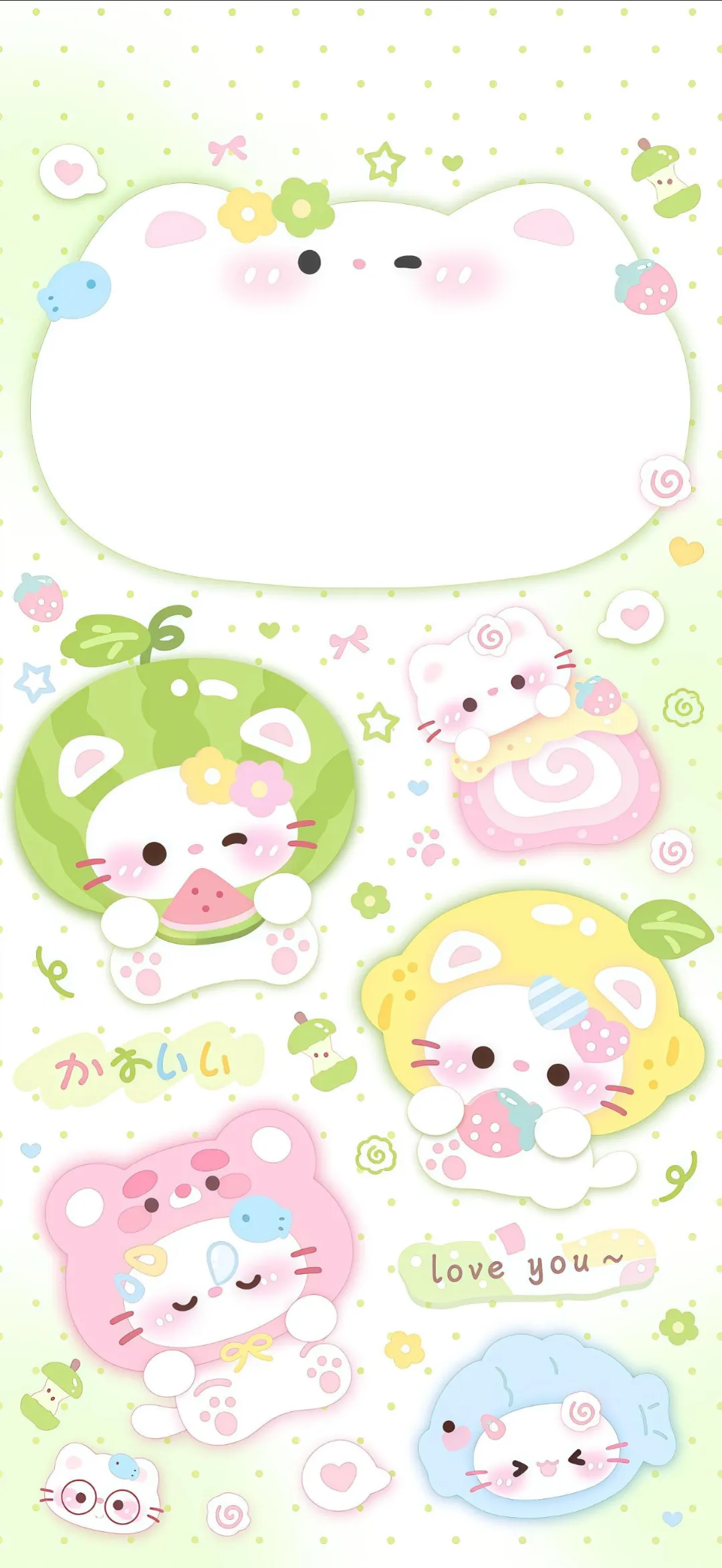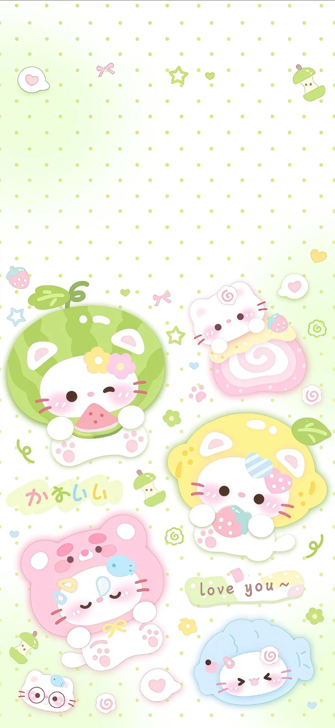 >Kitty壁纸|绿色系Kitty手机壁纸