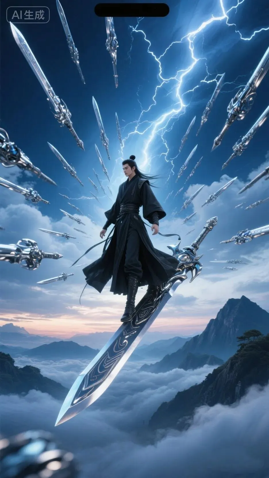 御剑凌空,万剑环绕,雷电云海间尽显江湖侠气,酷飒又梦幻。