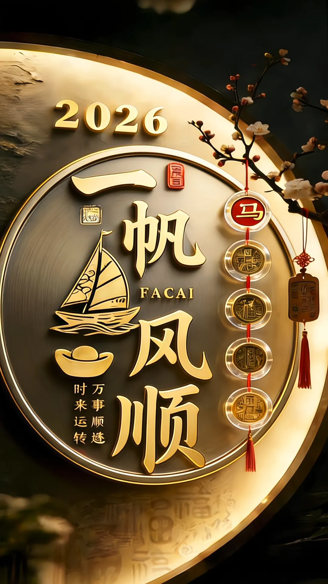 >無水印/国风吉祥语手机壁纸!2026!一帆风顺
