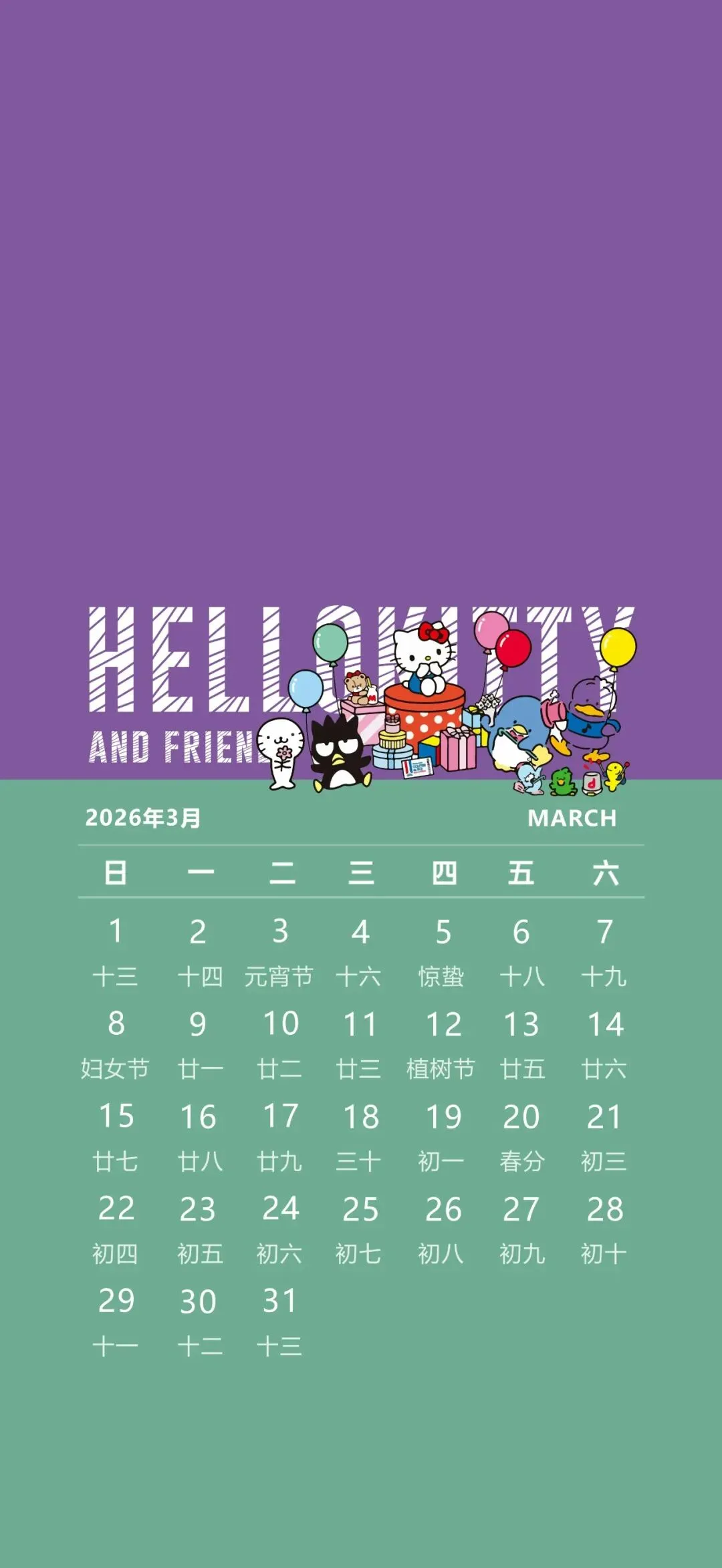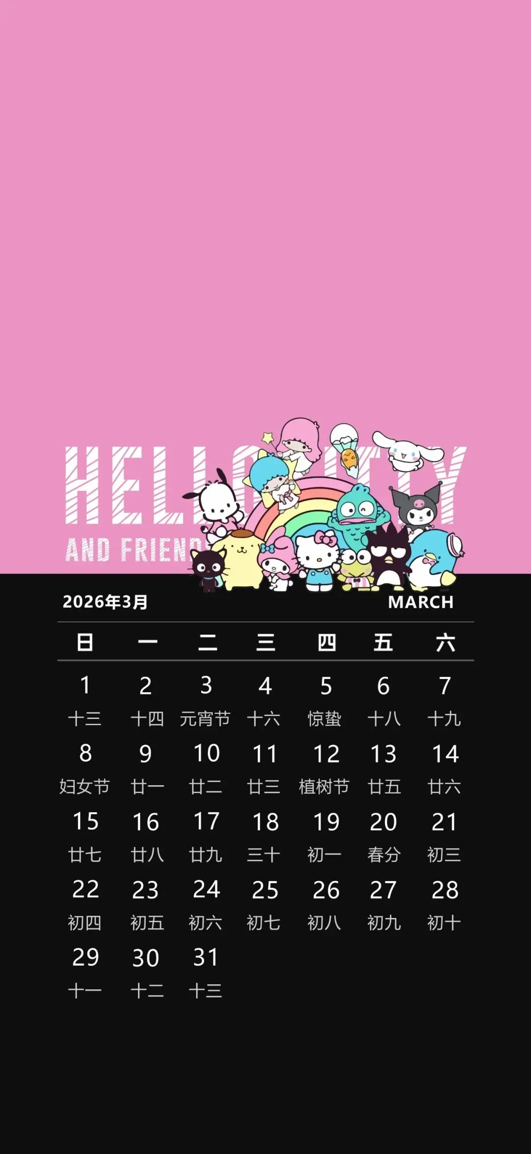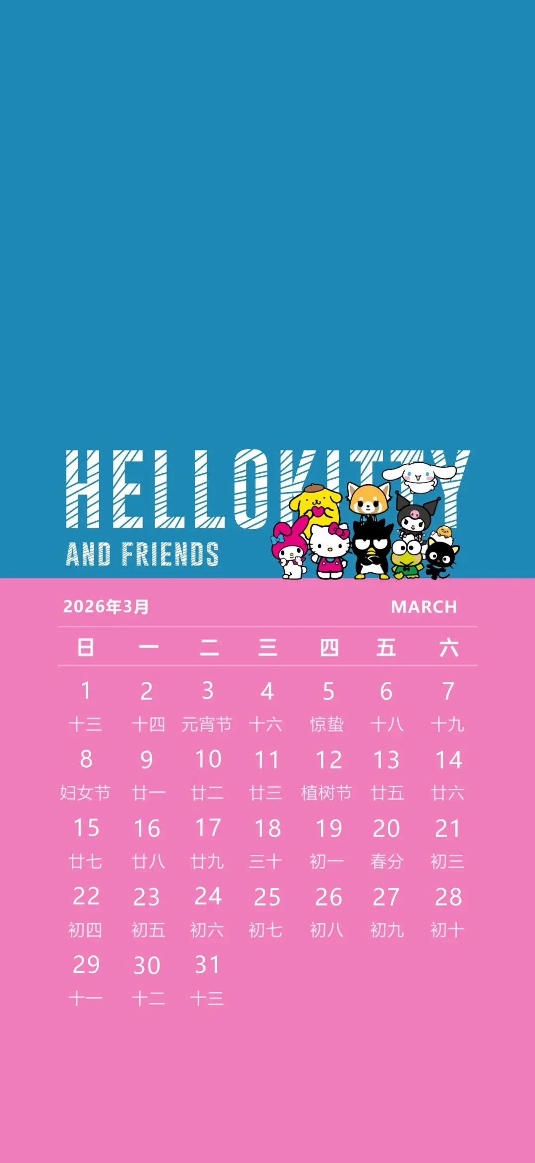 当前位置:首页>手机壁纸>【手机壁纸分享】1346期 波妞丨飞天小女警丨三丽鸥3月日历丨iOS26壁纸