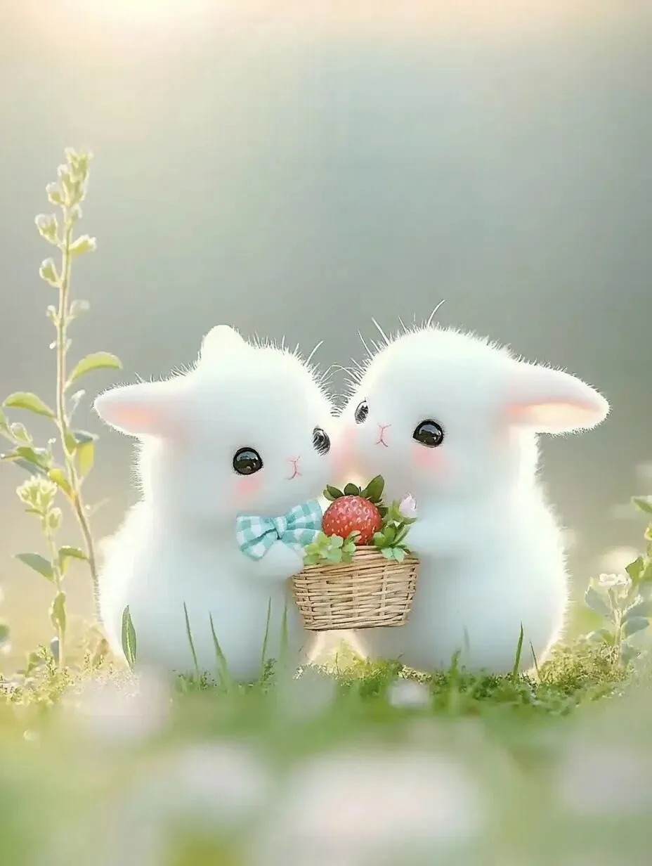 兔子那圆滚滚的身体,像个毛茸茸的小球。它们的耳朵竖起,仿佛在倾听世界的美好,给人带来无尽的治愈。